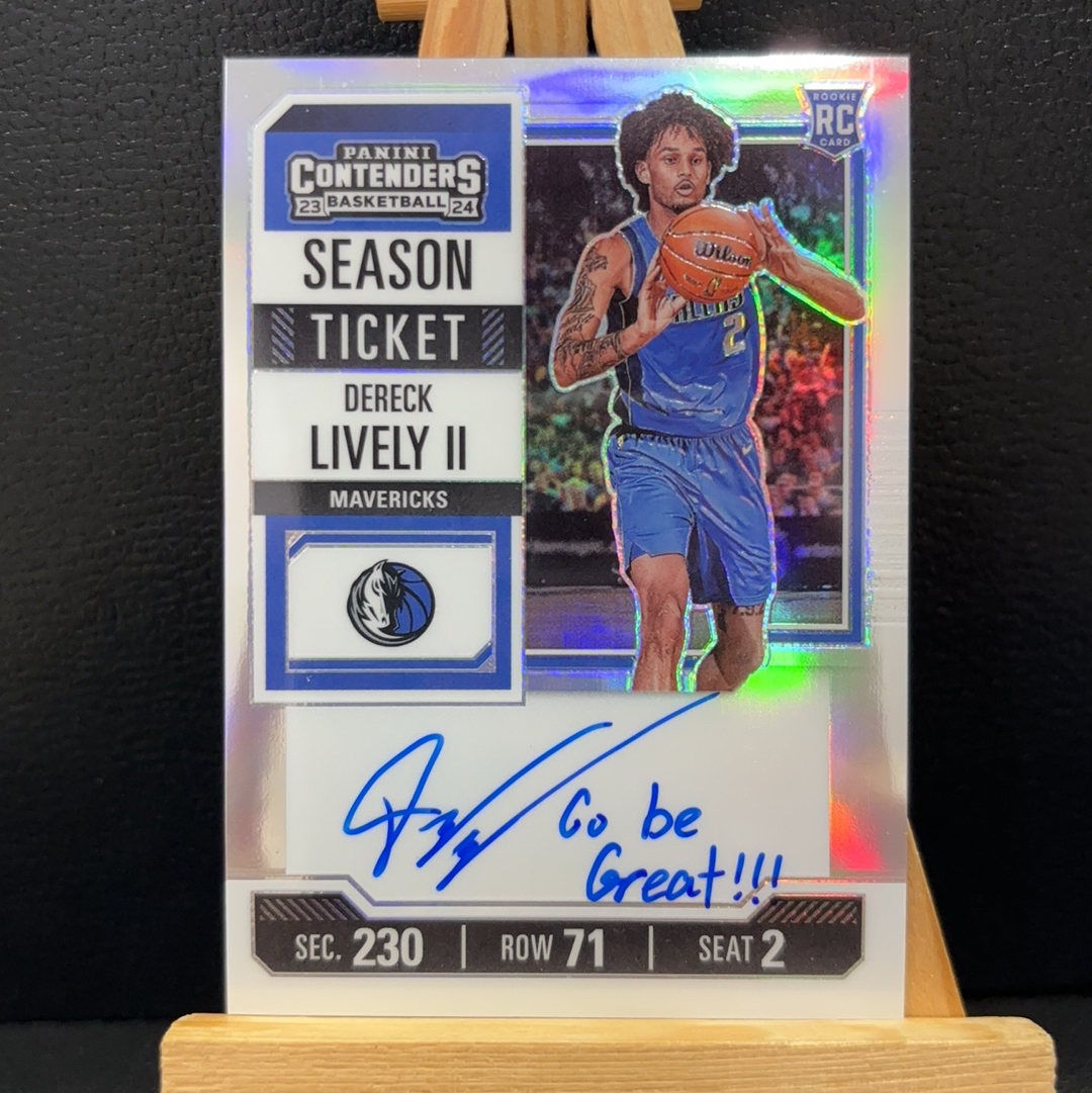 2023-24 Panini Contenders Dereck Lively II RC 德里克 莱夫利二世 独行侠 新秀 球票 银折 签字 铭文签 卡签 墨迹完美 潜力无限 品相精美【鸥卡收卡】