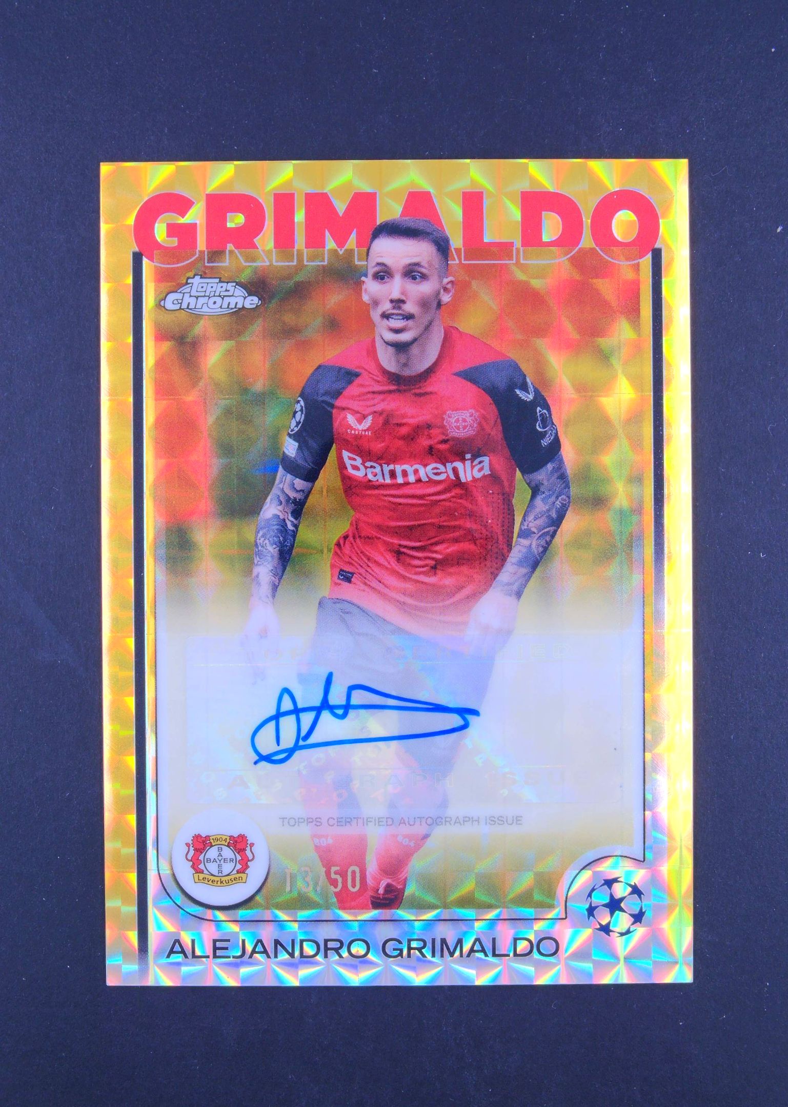 2025 Topps Chrome Alejandro Grimaldo 亚历杭德罗 格里马尔多 签字 贴签 金折 50编 勒沃库森 欧冠 正TC 战神无双拍卡 (褒姒)