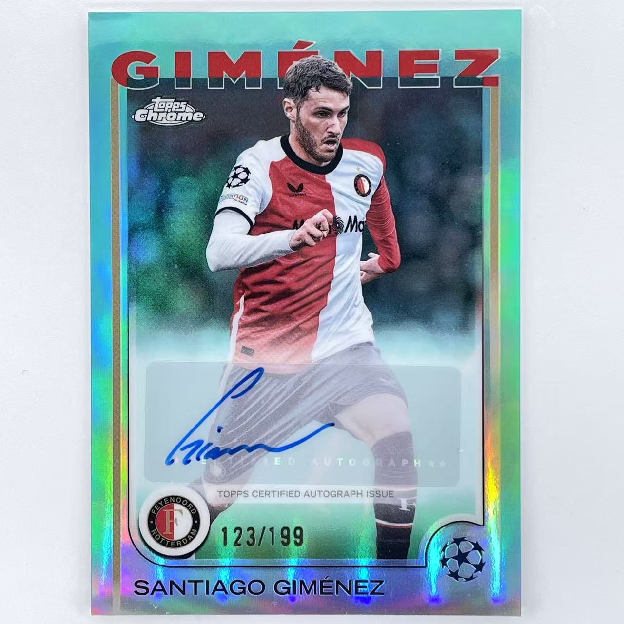 H 2024-25 Topps Chrome Santiago Gimenez 圣地亚哥 吉门内斯 希门内斯 费耶诺德 墨西哥 欧冠 TC 199编 签字 签名 青折 折射 轻印如图 众孚虫虫#