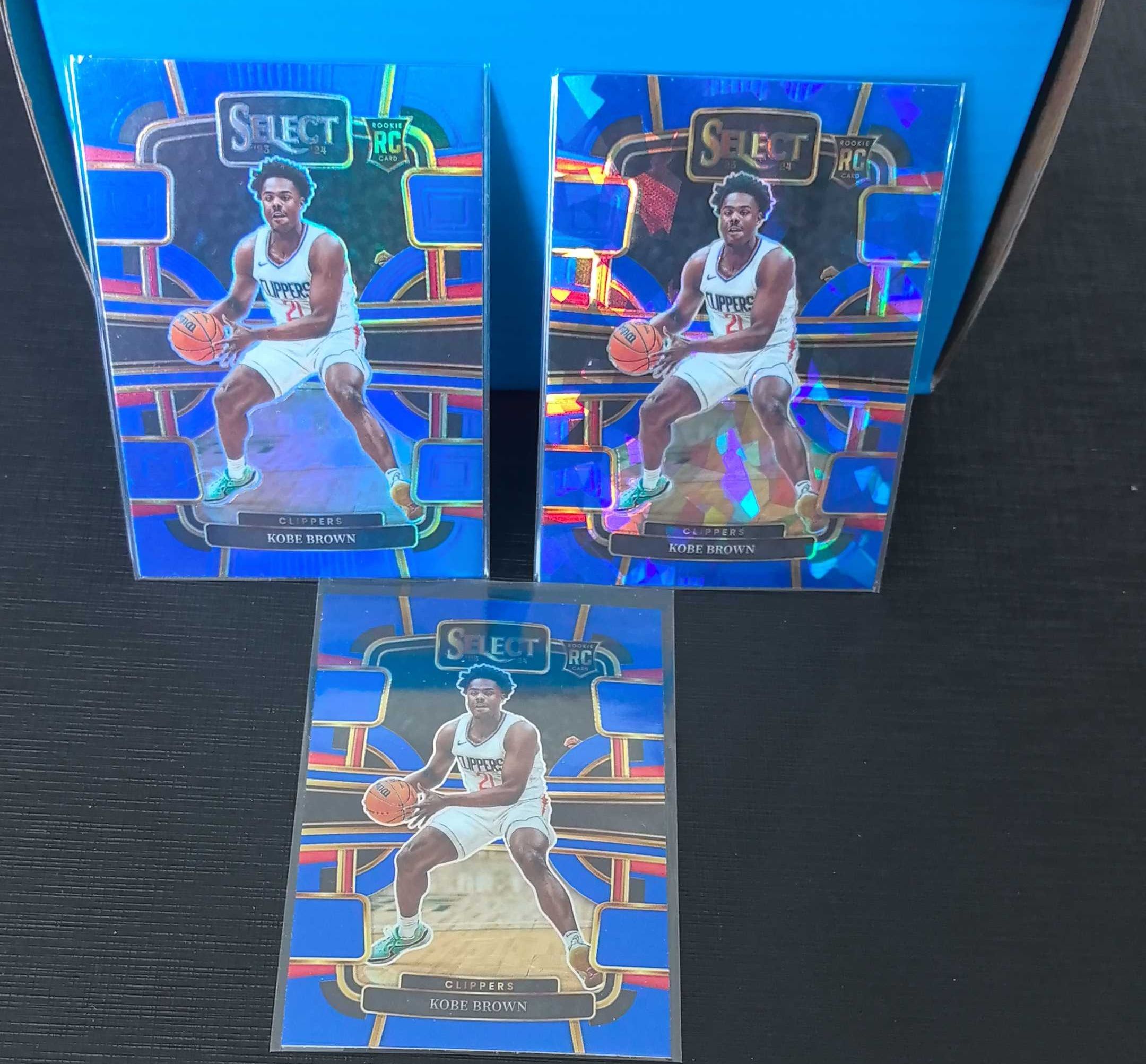 2023-24 Panini Select Kobe Brown rc 新秀 快船 科比布朗 一级蓝折 两张 蓝碎冰折一张