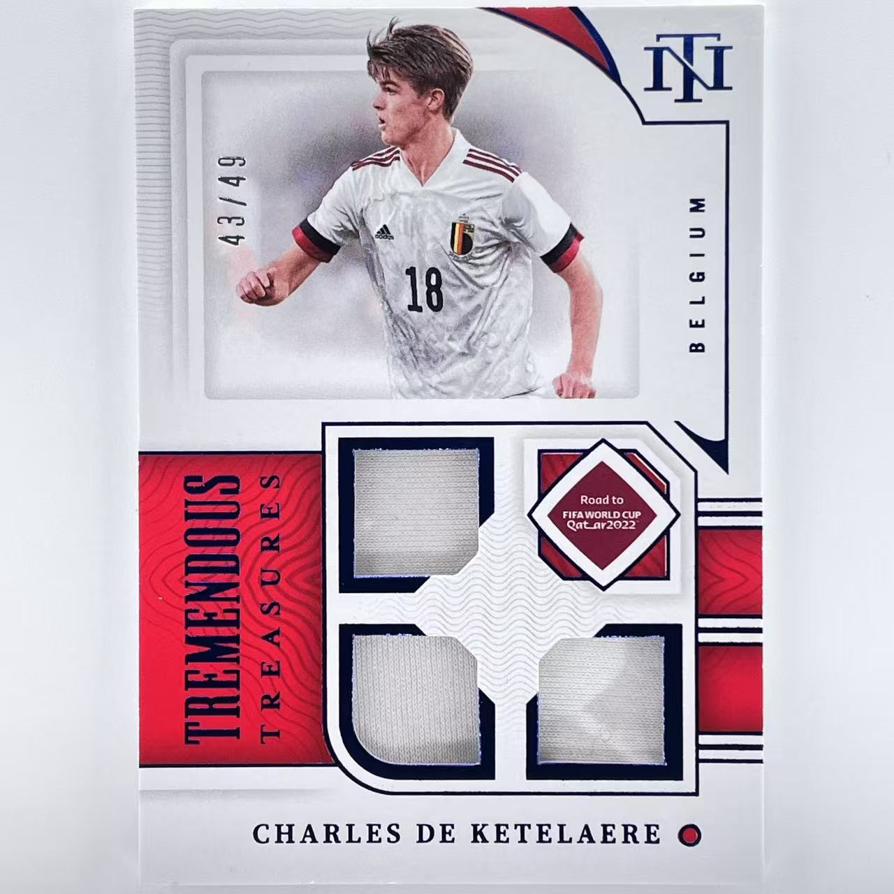 H 2022 Panini National Treasures Charles de Ketelaere 德凯特莱尔 比利时 AC米兰 亚特兰大 布鲁日 CDK 世界杯国宝 49编 Tremendous 三窗物料 蓝平行 轻印 众孚虫虫#