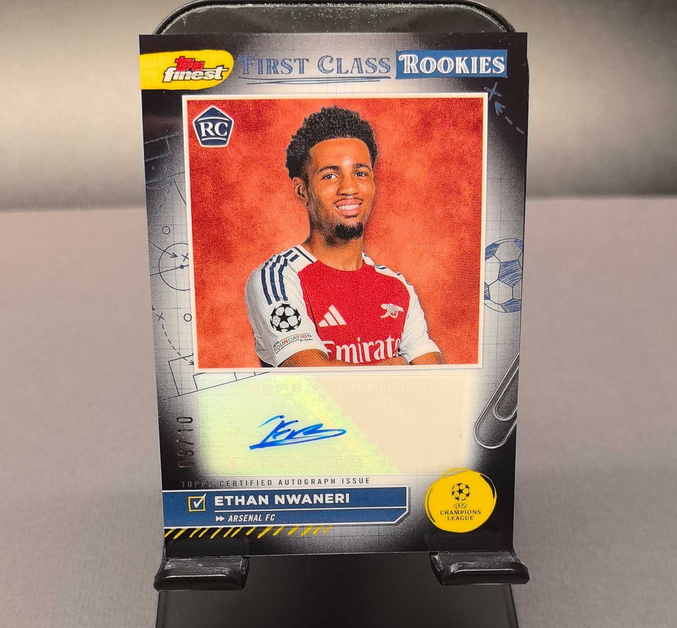 2025 Topps Finest Ethan Nwaneri RC 恩瓦内里 tc 头等舱签字 金折 /10编 低编 签字 阿森纳 超级新星 小妖 first class rookie 卡品墨迹如图