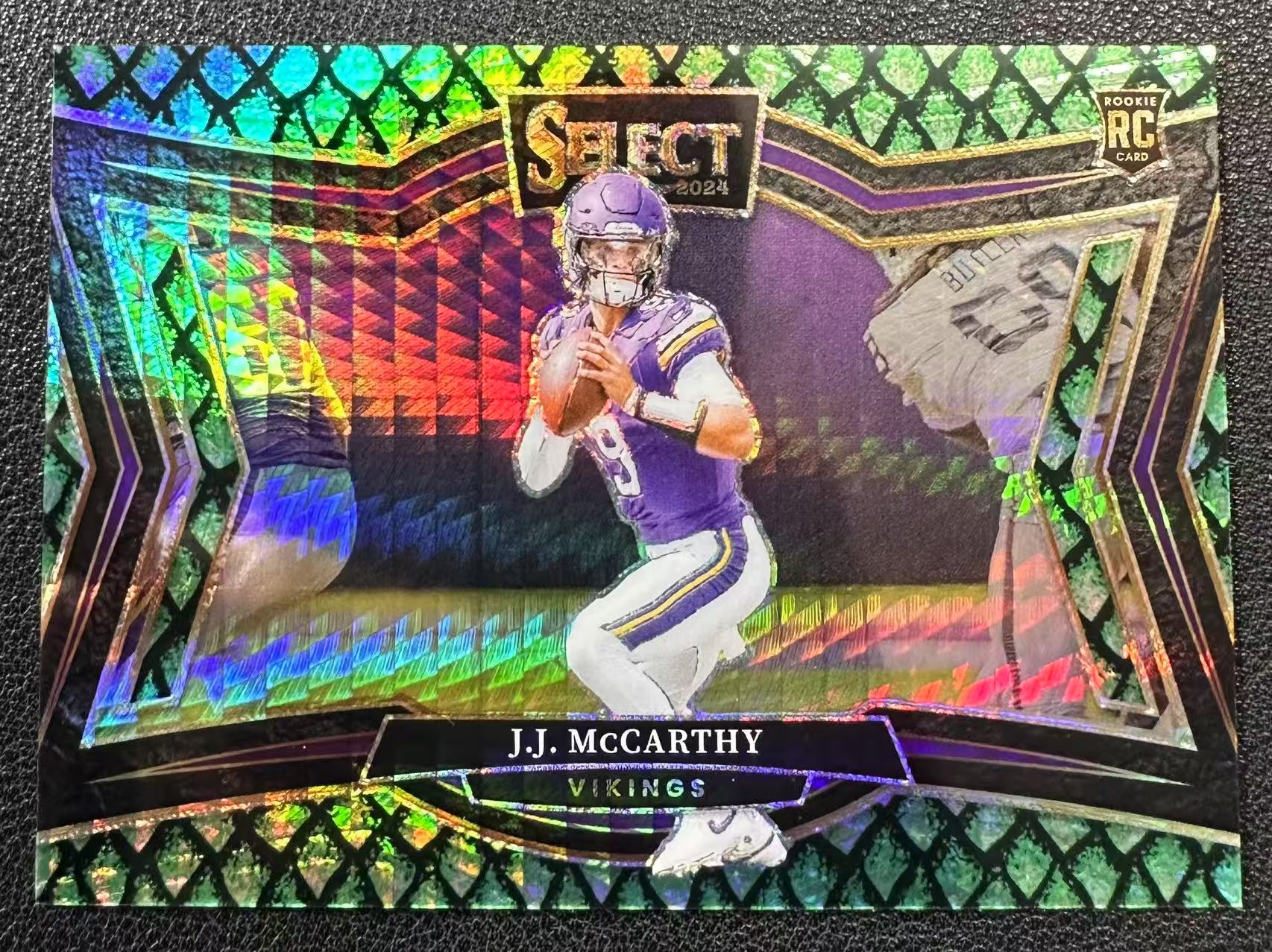 2024 Panini Select J.J. McCarthy RC NFL 新秀 SE 五级 比例 JJ 麦卡锡 59/70编 绿 龙鳞 龙纹 折 卡品细节如图 专收凑套必备 维京人 大热门好秀