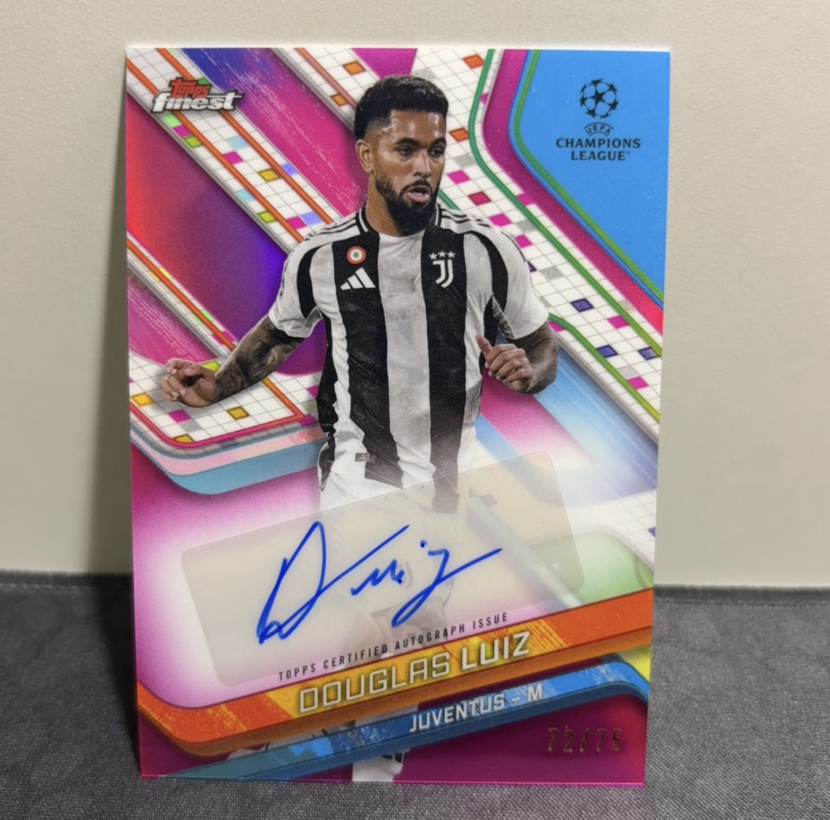 【风速狗】2025 topps Chrome Finest 足球 Douglas Luiz 欧冠 欧战 尤文图斯 道格拉斯 路易斯 签字 签名 完美签 72/75编 板擦