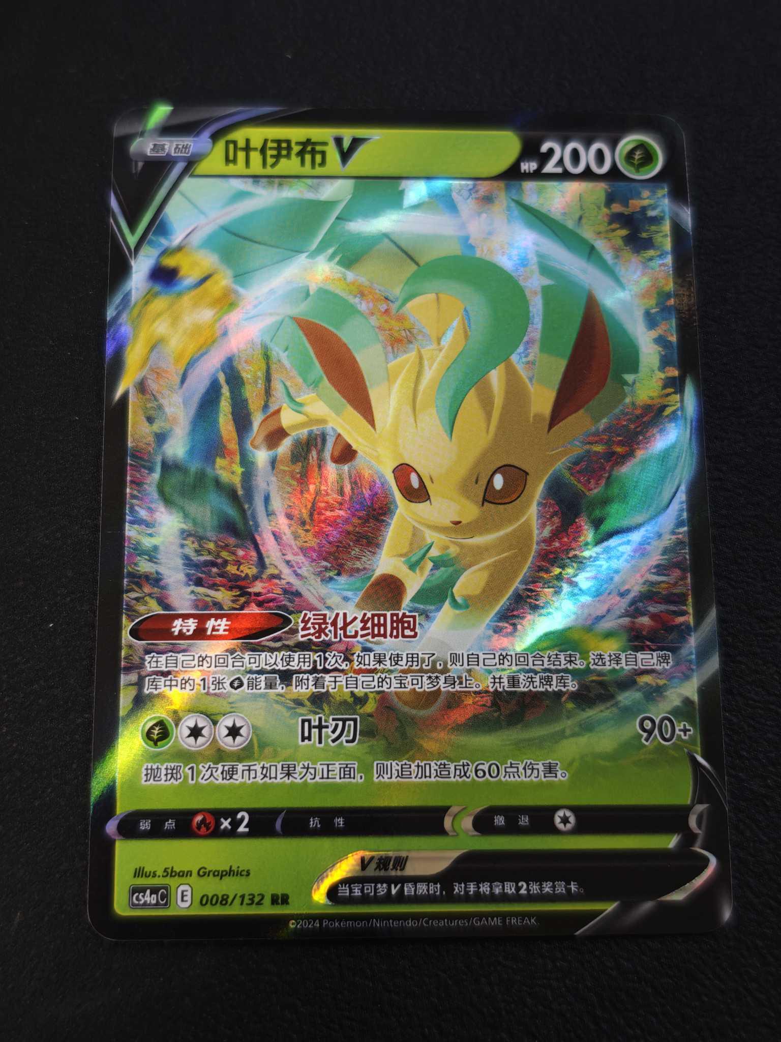 2024 Pokemon TCG 剑&盾 九彩汇聚 朋 叶伊布V chs 【辰辰卡牌】宝可梦 简中 CS4aC-008/132 RR 裸卡卡品如图 默认流通 收藏凑套必备(w)