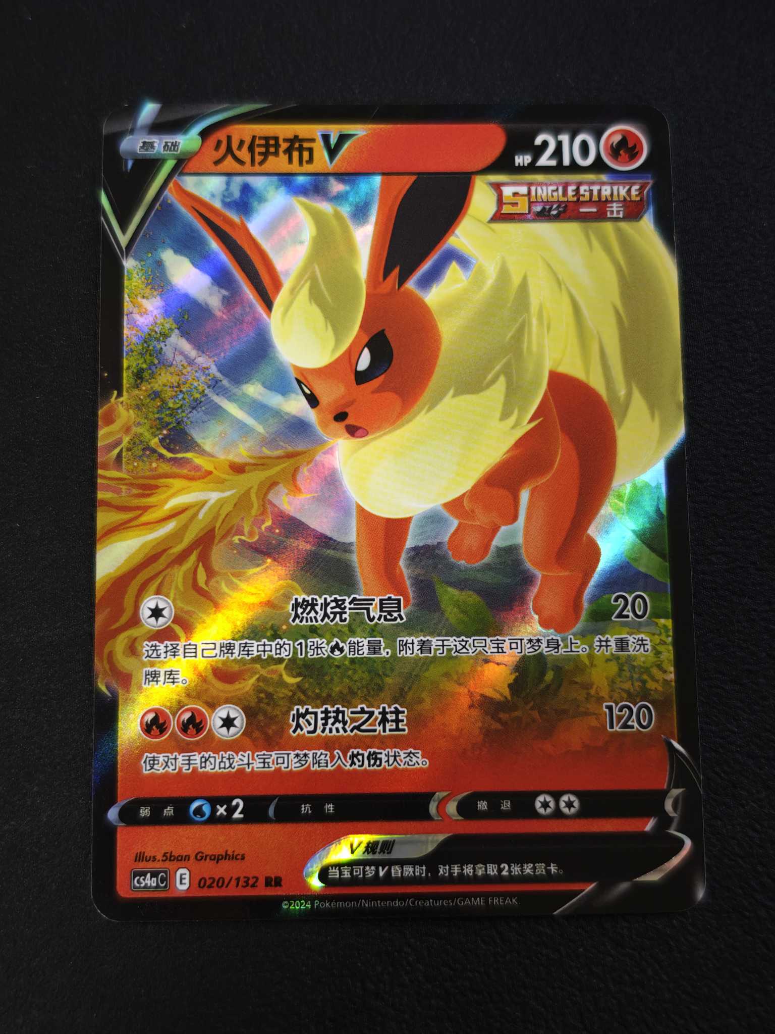 2024 Pokemon TCG 剑&盾 九彩汇聚 朋 火伊布V chs 【辰辰卡牌】宝可梦 简中 CS4aC-020/132 RR 裸卡卡品如图 默认流通 收藏凑套必备(w)