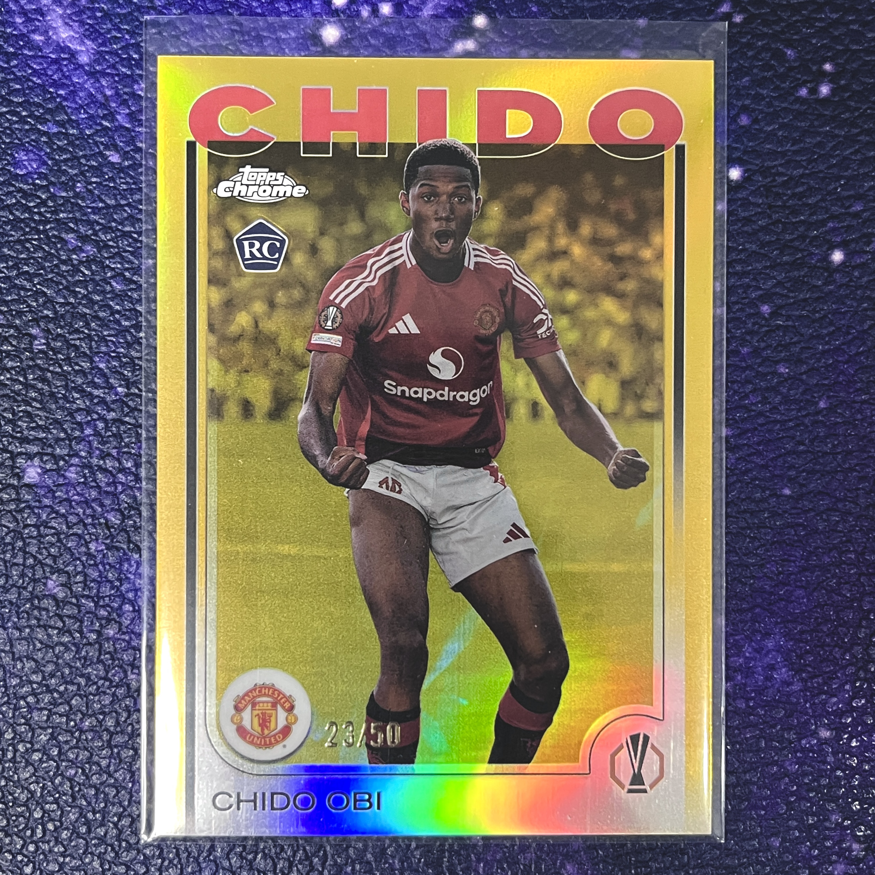 2024-25 Topps Chrome Chido Obi 欧战Chrome 奇多 奥比 50编 金折 新秀RC 曼联小将 正系列 金折 值得收藏