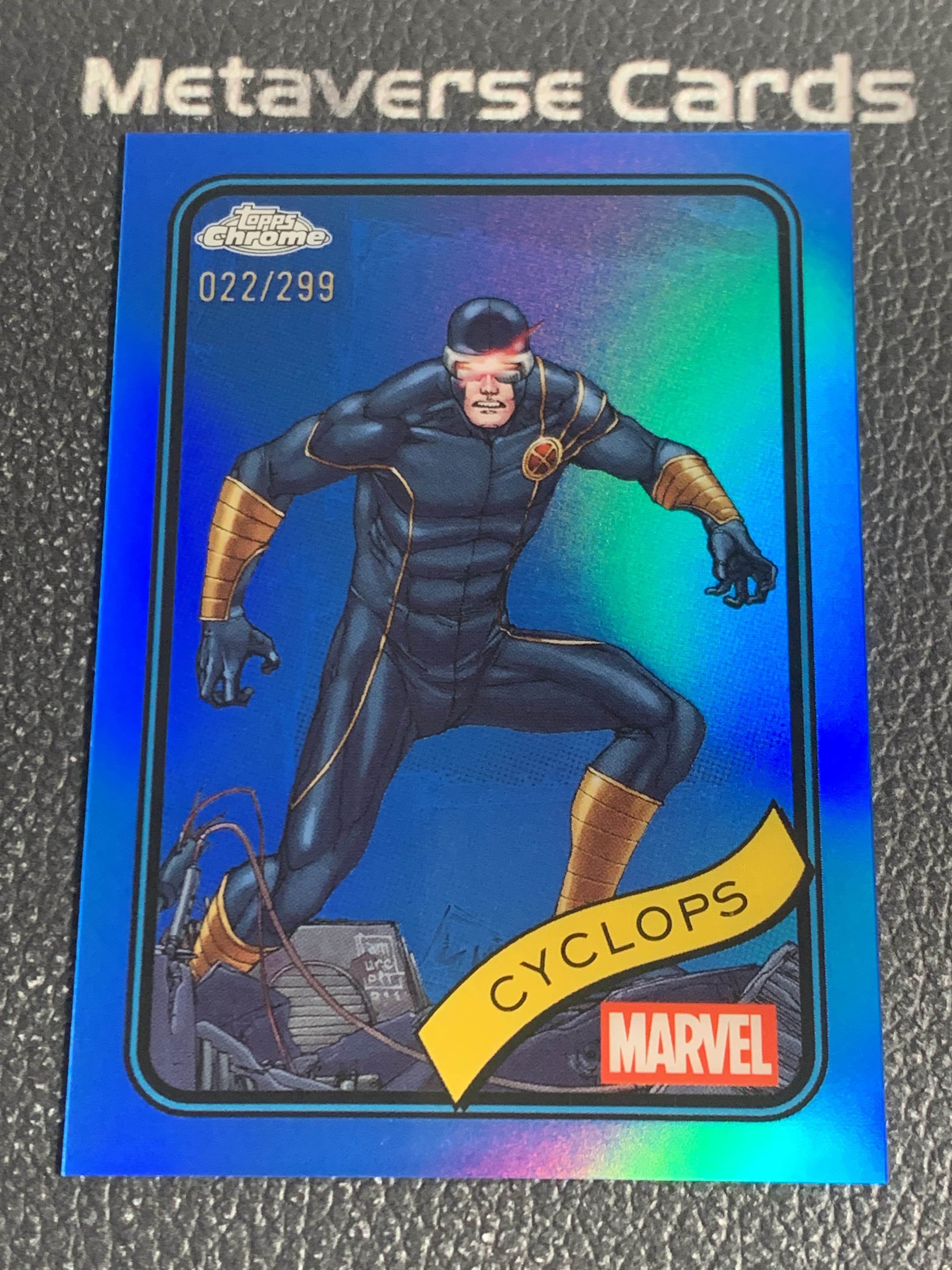 【元宇宙拍卖】米帅382:2025 Topps Chrome Marvel 漫威TC Cyclops X战警 镭射眼 蓝折 折射 022/299编 超级经典 微瑕如图 收藏必备