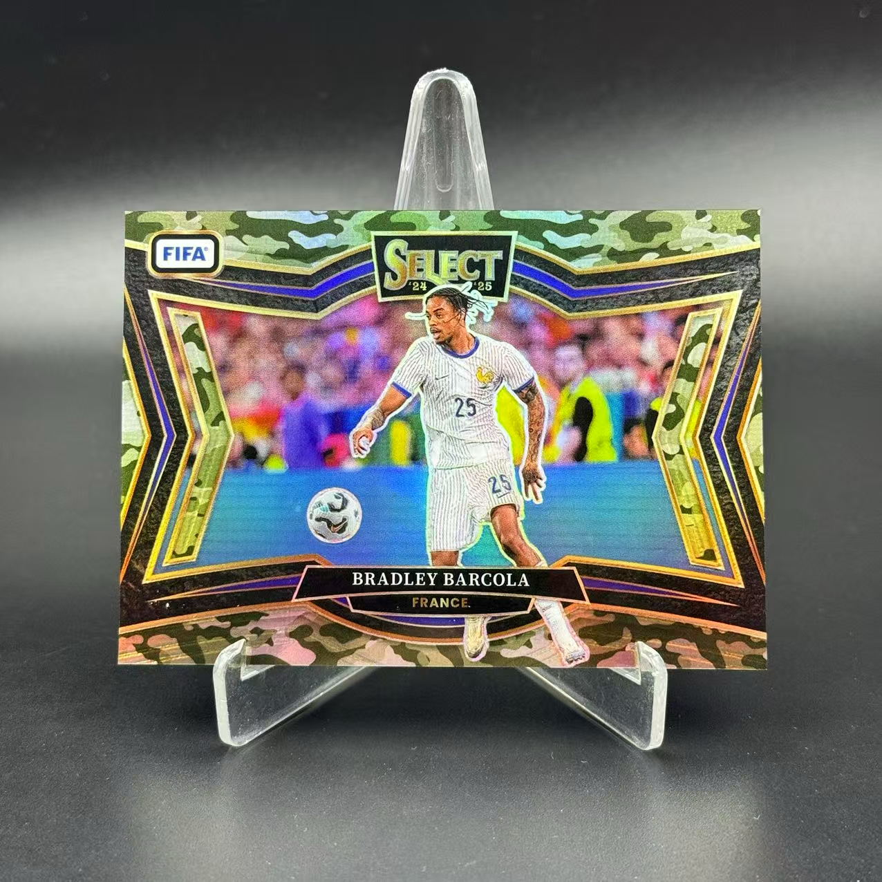 【浩冉拍卖】2024-25 PANINI SELECT FIFA 足球 135编 BRADLEY BARCOLA 巴尔克拉 巴黎 法国 绿迷彩折 三级 base 卡品如图 收藏必备 凡阿提