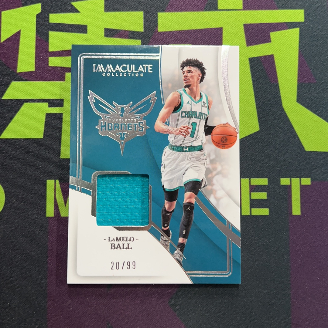2023-24 Panini Immaculate LaMelo Ball 夏洛特黄蜂 三球 拉梅洛鲍尔 球衣物料切割实物 20/99编 正面瑕疵如图【趣集卡拍卖071501】
