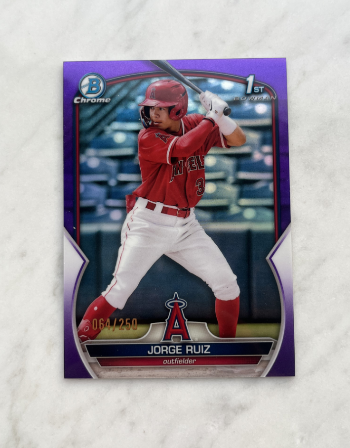 2023 Topps Chrome Jorge Ruiz RC 棒球 豪尔赫 鲁伊斯 洛杉矶天使 新秀1st 紫折 /250 生涯第一版卡 未来可期 赛季开始 随时爆发
