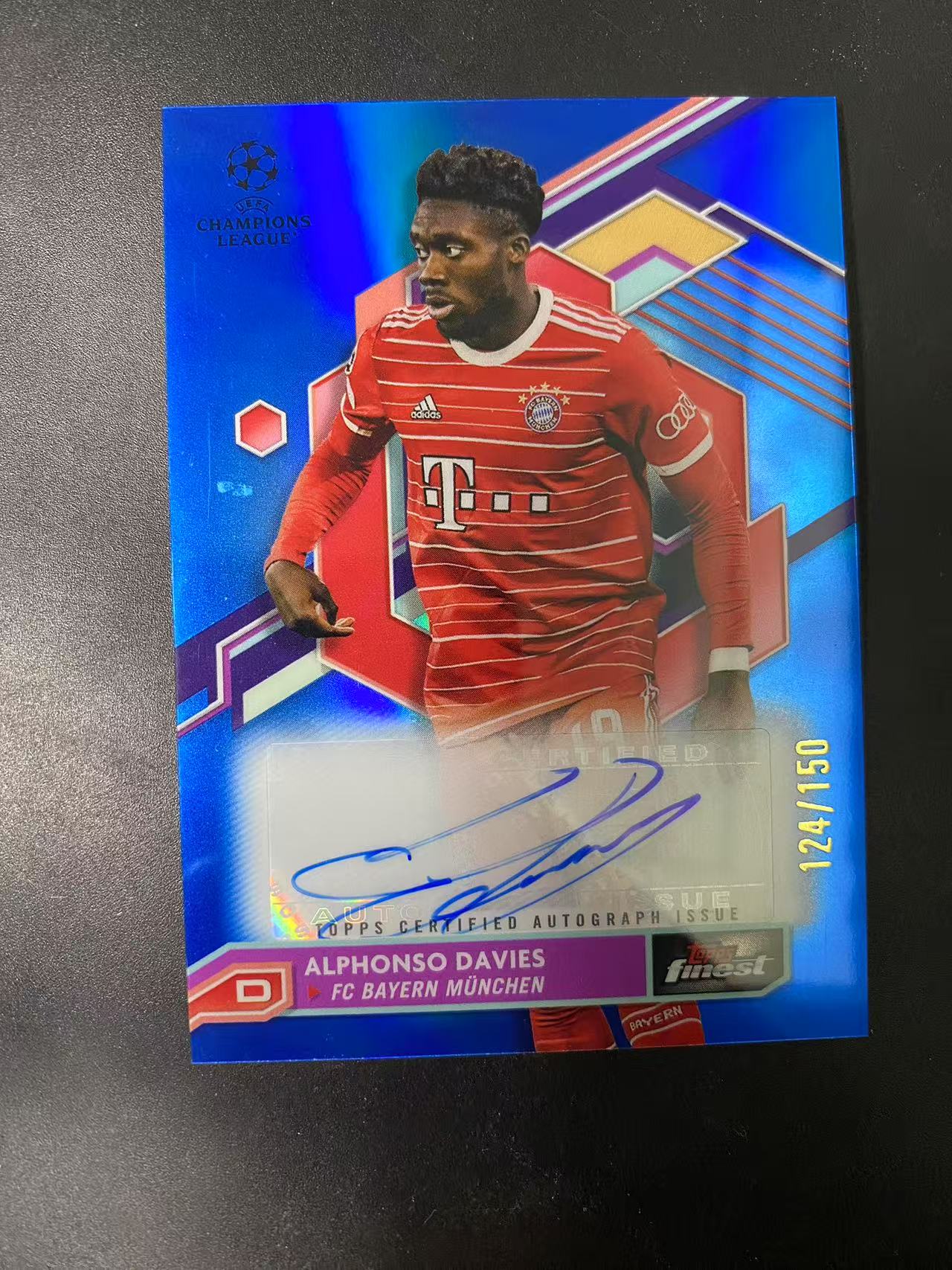 2023 Topps Finest Alphonso Davies 阿芳 阿方索 戴维斯 拜仁慕尼黑 蓝折签 签字 150编 完美签 折射 卡品如图