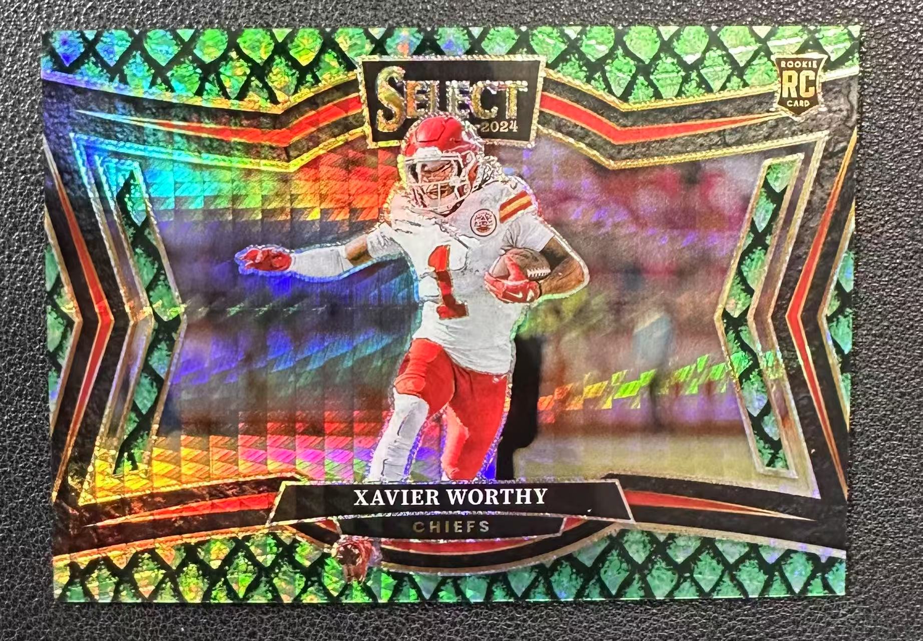 2024 Panini Select Xavier Worthy RC NFL SE 新秀 泽维尔 沃西 5级 比例 22/70编 绿 龙纹 龙鳞 折 专收凑套必备 卡品细节如图 酋长