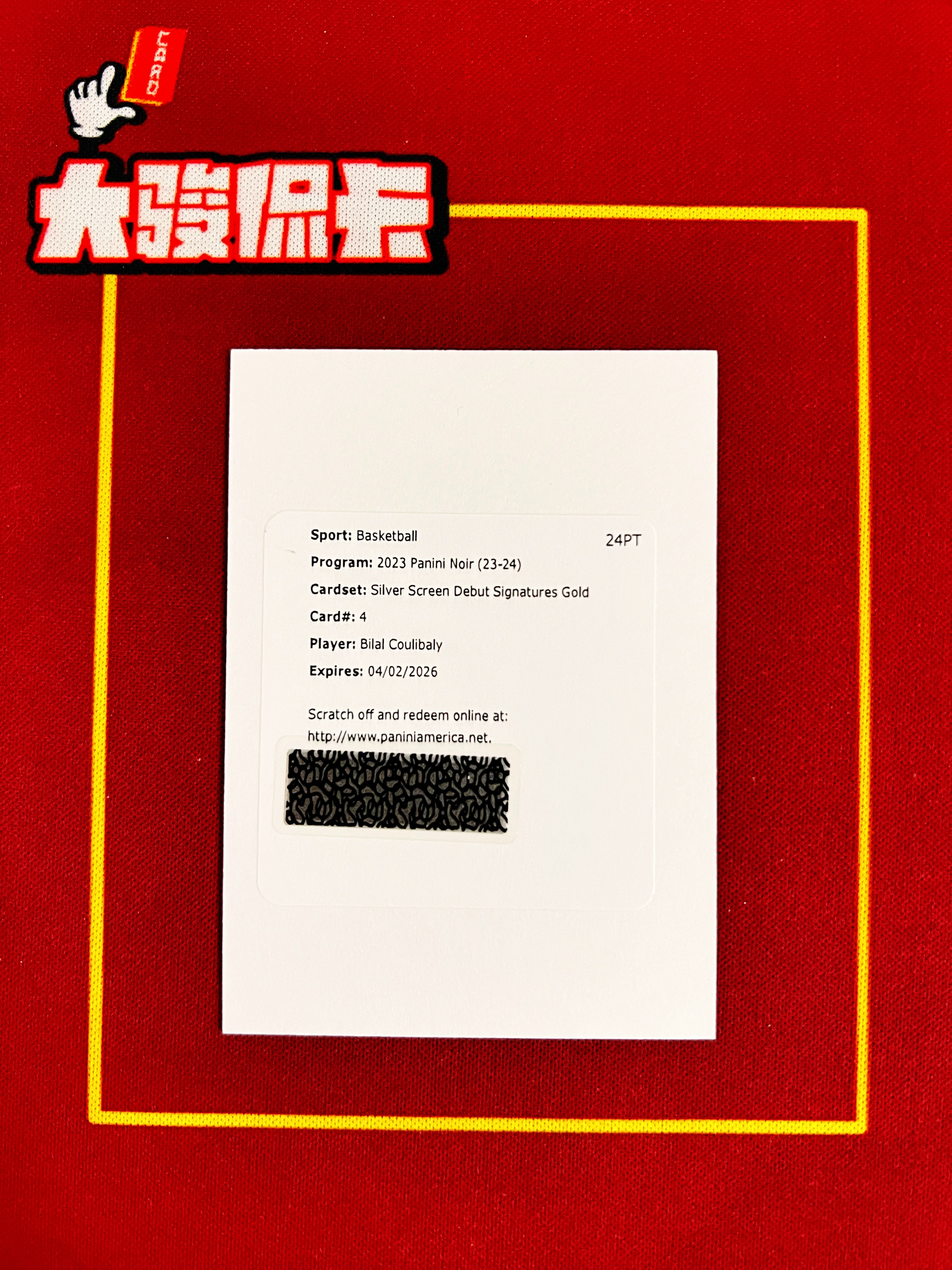 【大骏侃卡】2023-24 Panini Noir Bilal Coulibaly RC 诺尔 新秀 奇才 库利巴利 首秀签字卡 25编 金平行 交换板 详情看描述 发板不发码【旋风】