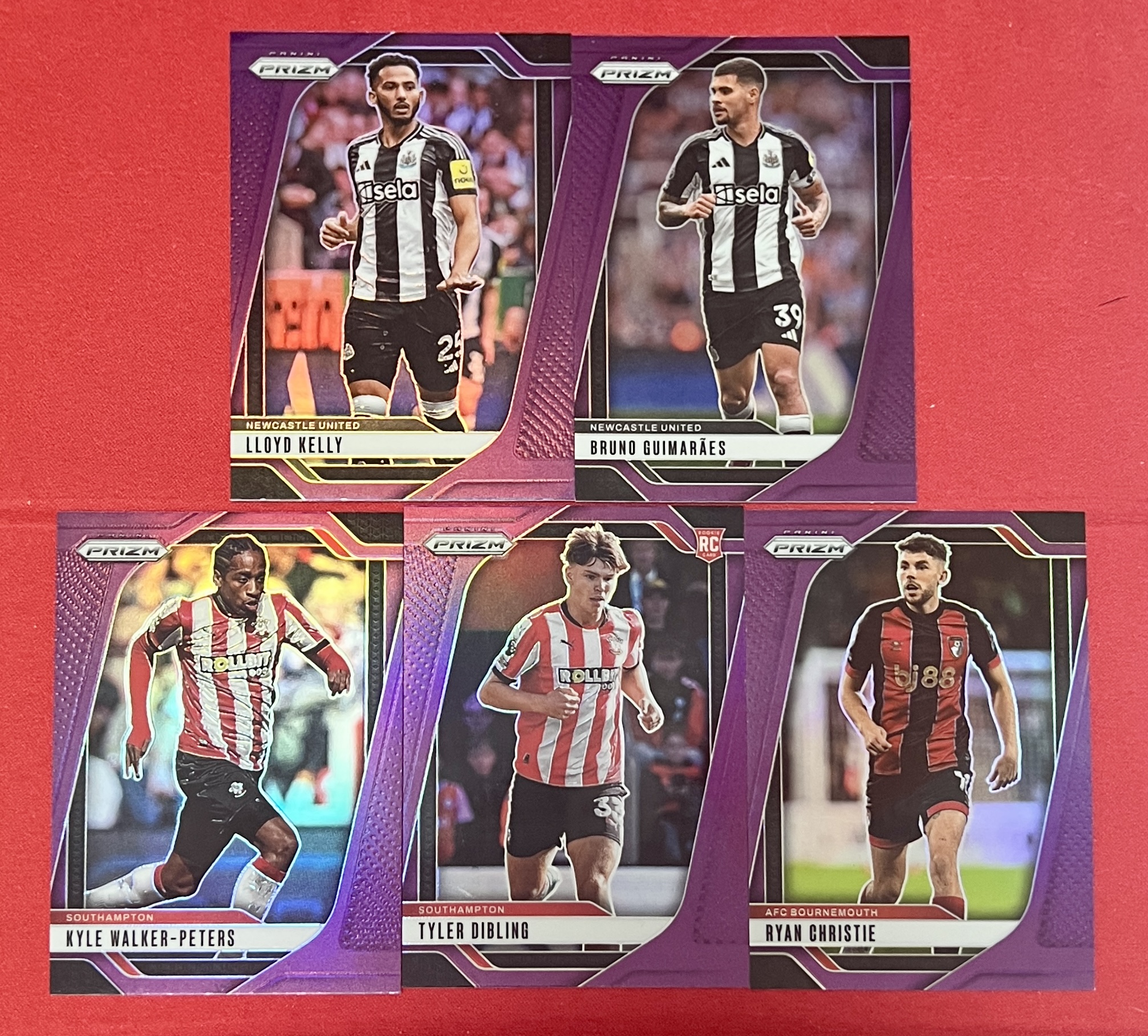 [爷叔代卖]2024-25 Panini Prizm Tyler Dibling RC 英超 纽卡 南安普顿 吉马良斯 凯利 克里斯蒂 沃克 彼得斯 迪布林 新秀 盒货 紫折 5张 lot 默认微瑕