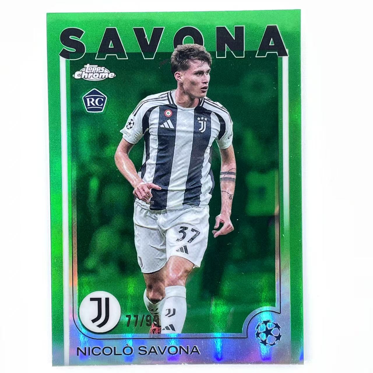 F 2024-25 Topps Chrome Nicolo Savona RC 尼科洛 萨沃纳 新秀 意大利 尤文图斯 77/99编 绿折 折射 欧冠 TC 轻印如图 众孚zgx17#