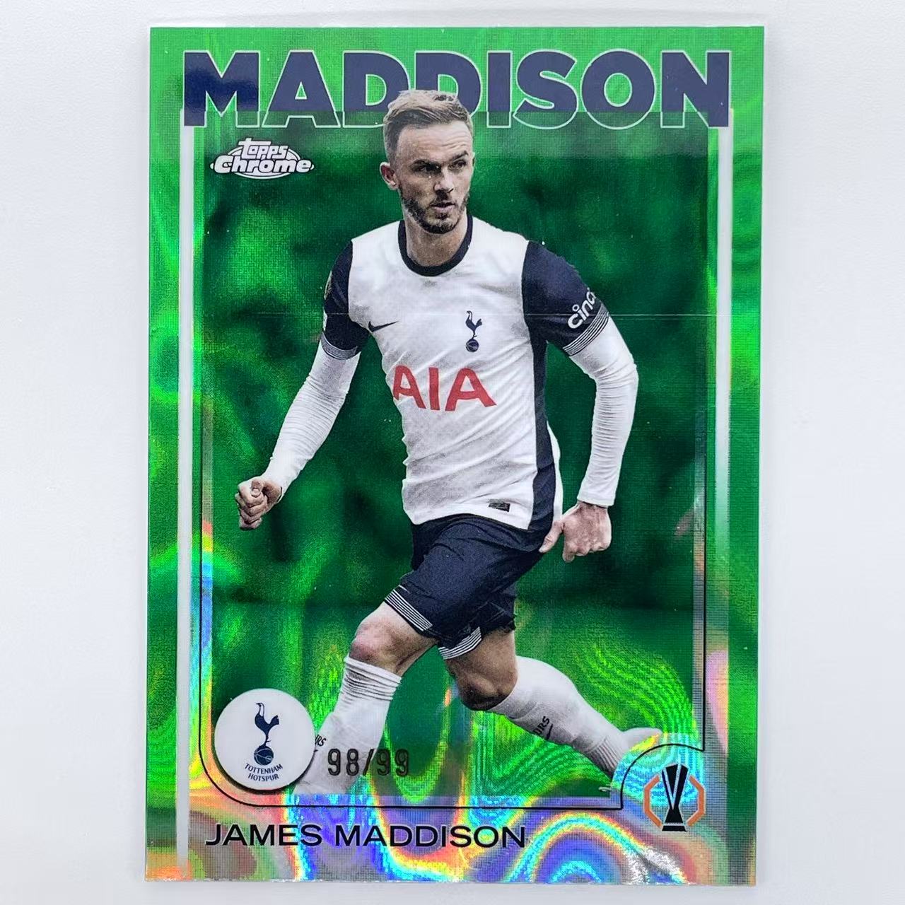 F 2024-25 Topps Chrome James Maddison 詹姆斯 麦迪逊 英格兰 莱斯特城 热刺 99编 绿熔岩折 折射 欧冠 TC 轻印如图 众孚zgx17#