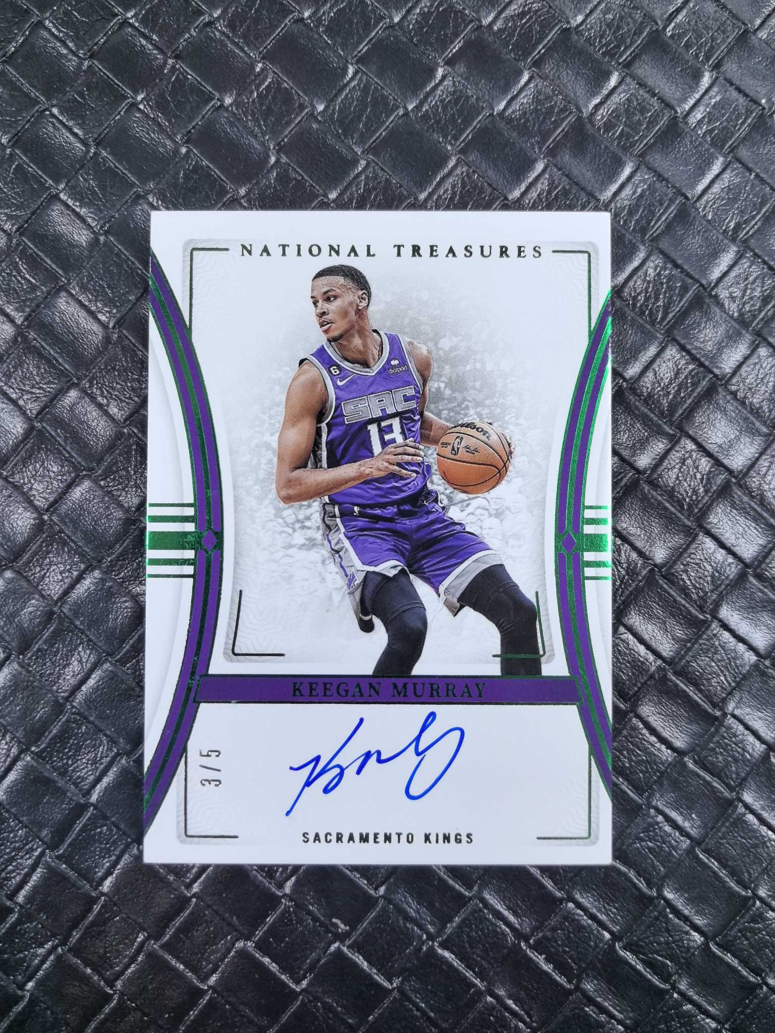 2023-24 Panini National Treasures Keegan Murray 国宝 国王 基根 默里 穆雷 卡签签字 3/5编 绿平行 新秀次年 首轮第四顺位 攻守兼备 瑕疵如图