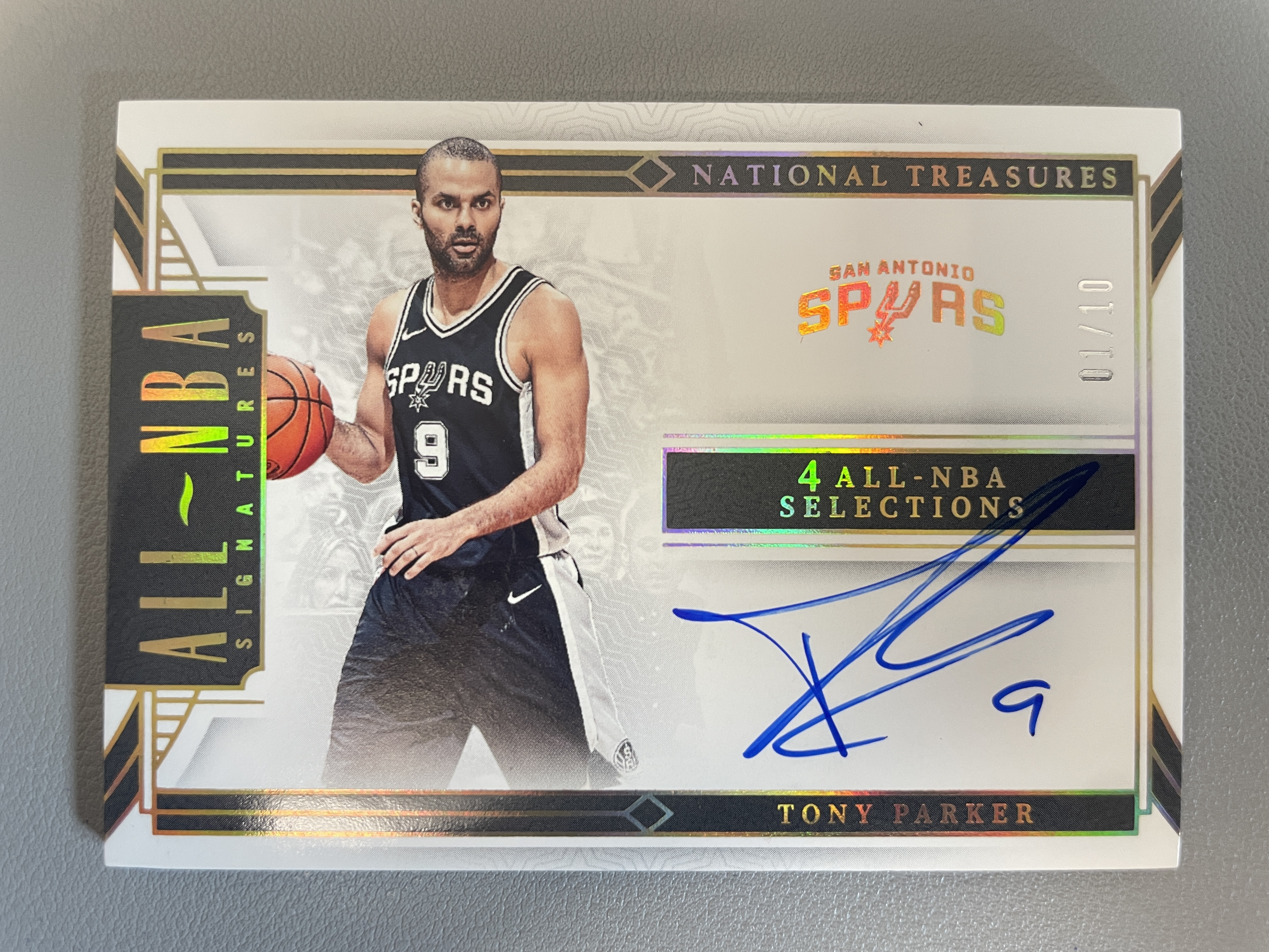 2023-24 Panini National Treasures Tony Parker 国宝 托尼 帕克 卡签 签字 背号签 01/10编 首编金平行 all nba 卡品微瑕如图 720CR36