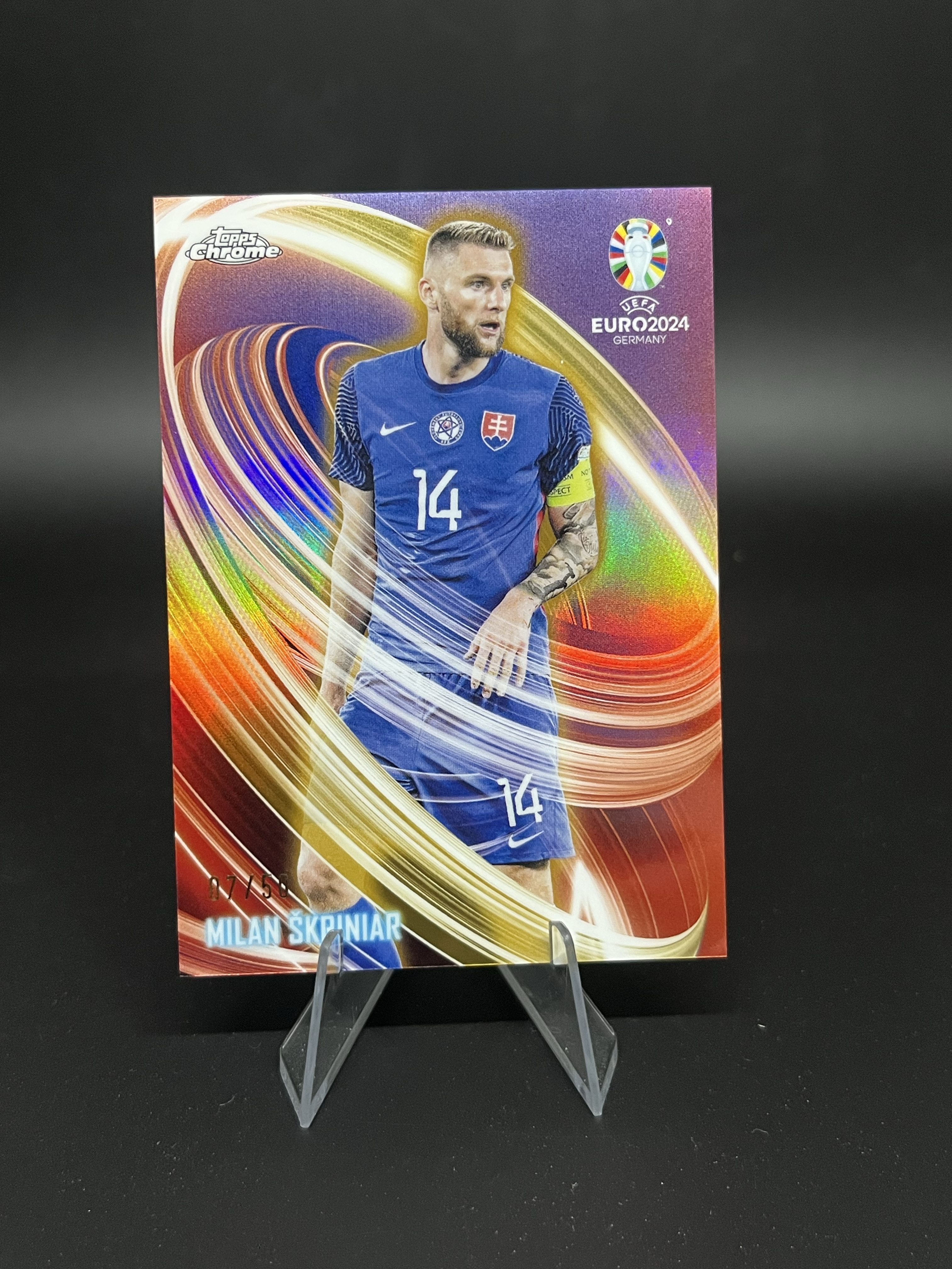 【蓉城拍卖】2024 topps chrome 欧洲杯 米兰·什克里尼亚尔 Milan Skriniar 国际米兰 大巴黎 07/50编 金折 巴黎圣日耳曼 霓虹国家特卡 火腿