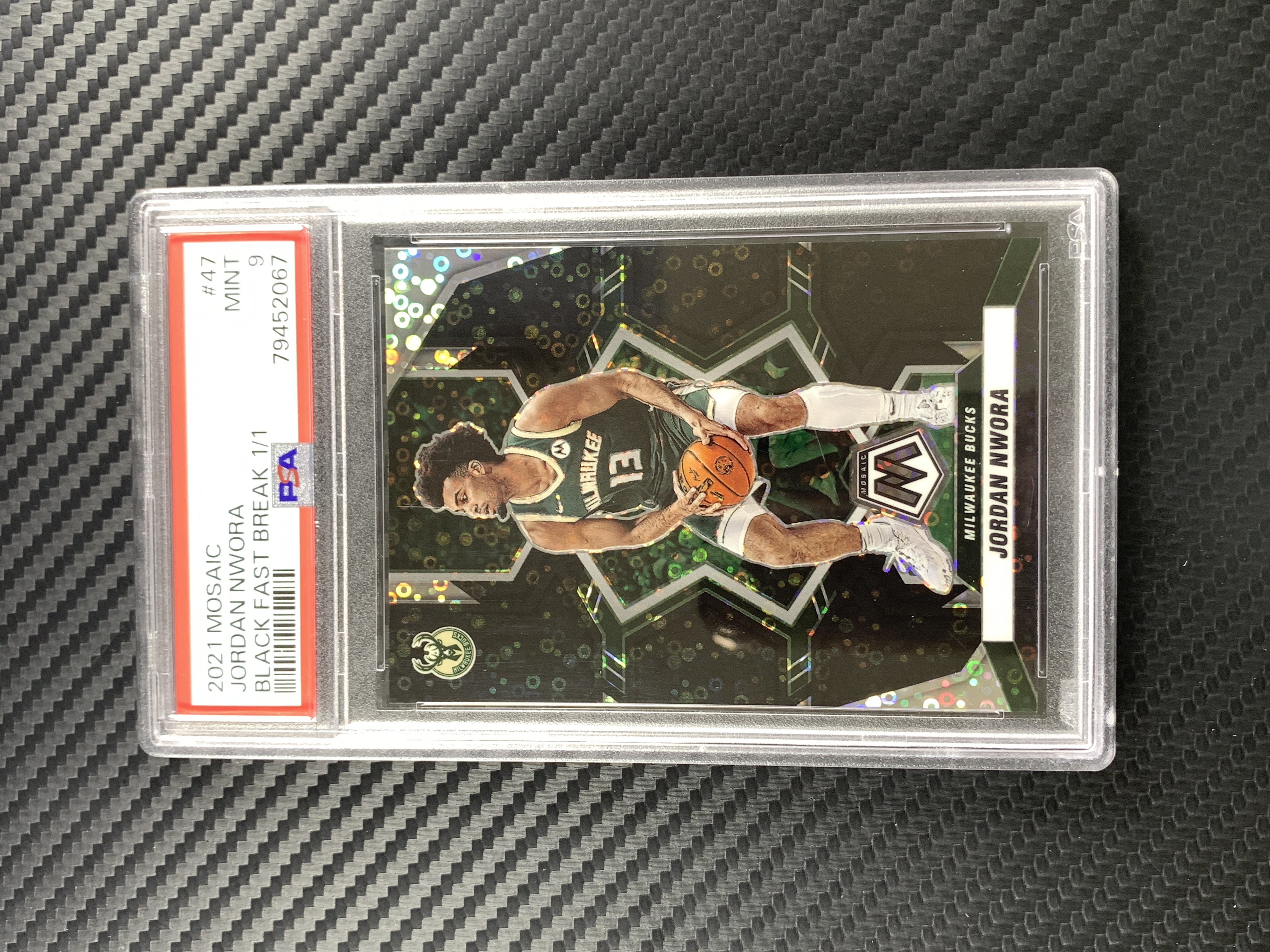 2021-22 Panini Mosaic Jordan Nwora【叨B叨】马赛克系列 密尔沃基雄鹿 乔丹 恩沃拉 黑泡泡折 限量1/1编 1of1 PSA评级9分 TAK