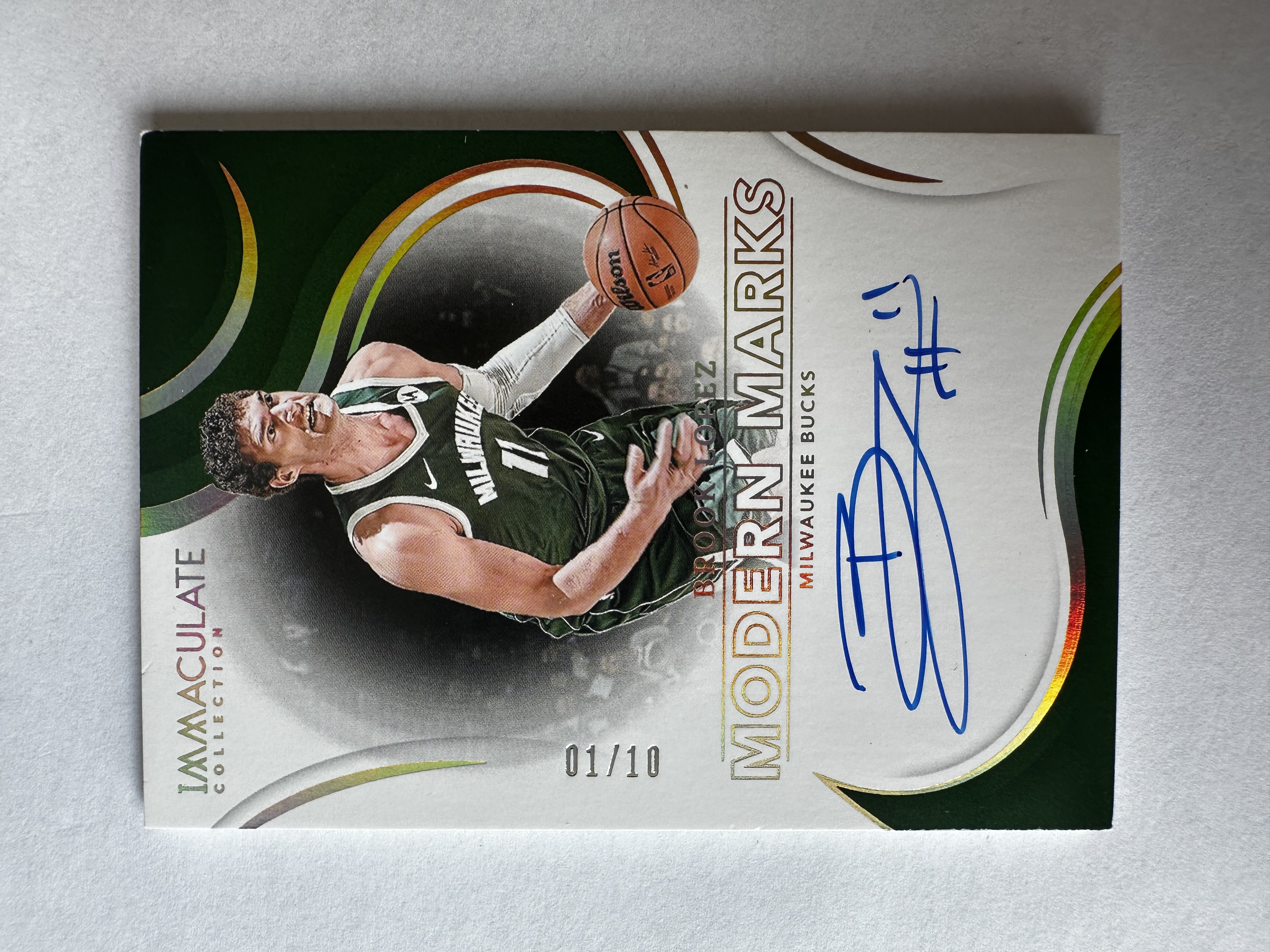 2023-24 Panini Immaculate Brook Lopez 【大锦拍卖】雄鹿 布鲁克 洛佩斯 imm 01/10编 首编 背号签 摩登签 签字 卡签 卡品如图(蓝蓝)
