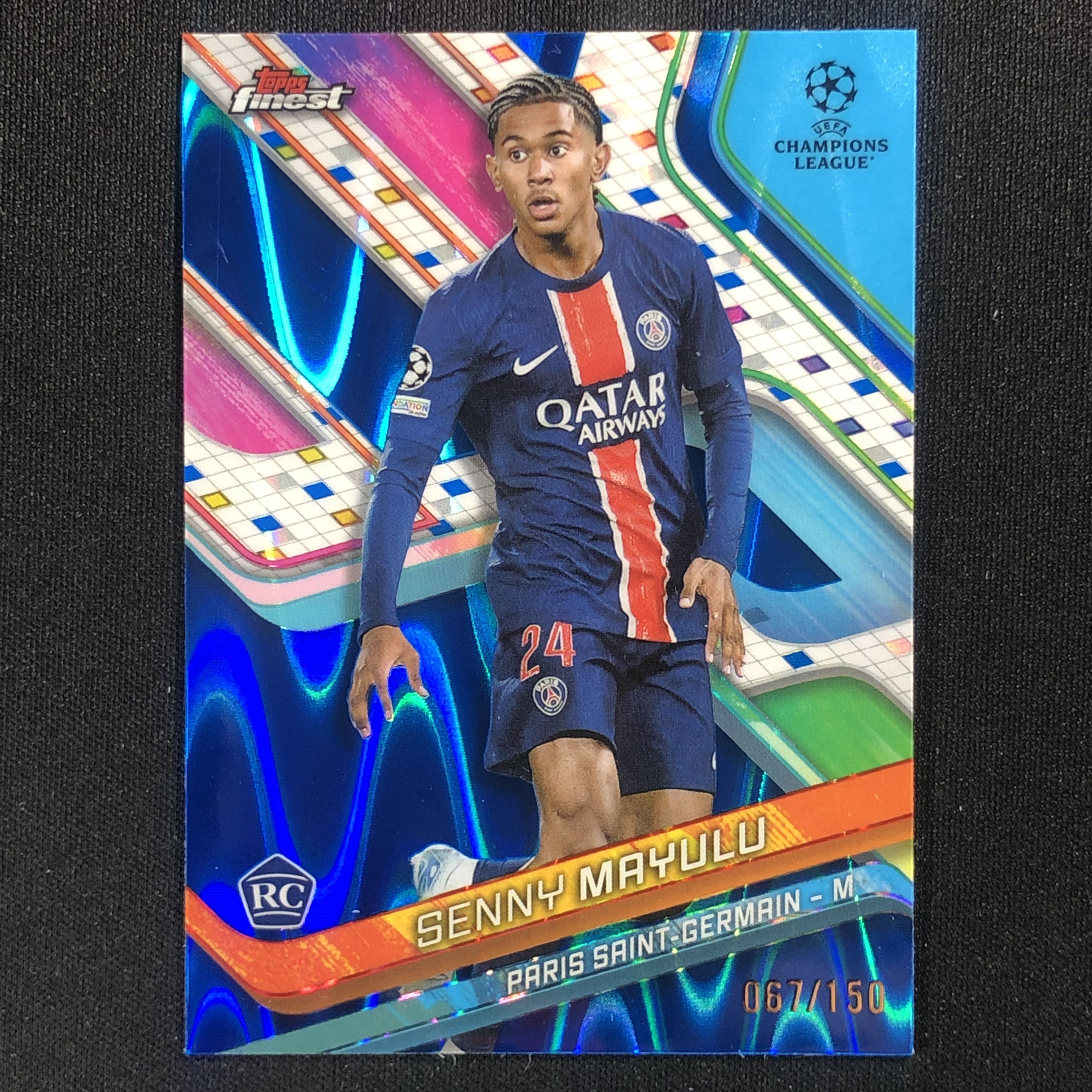 2025 Topps Finest Senny Mayulu RC 【piaji】马由卢 巴黎圣日尔曼 新秀 /150编 蓝水波纹 base 卡品如图 大巴黎 新星 aurora