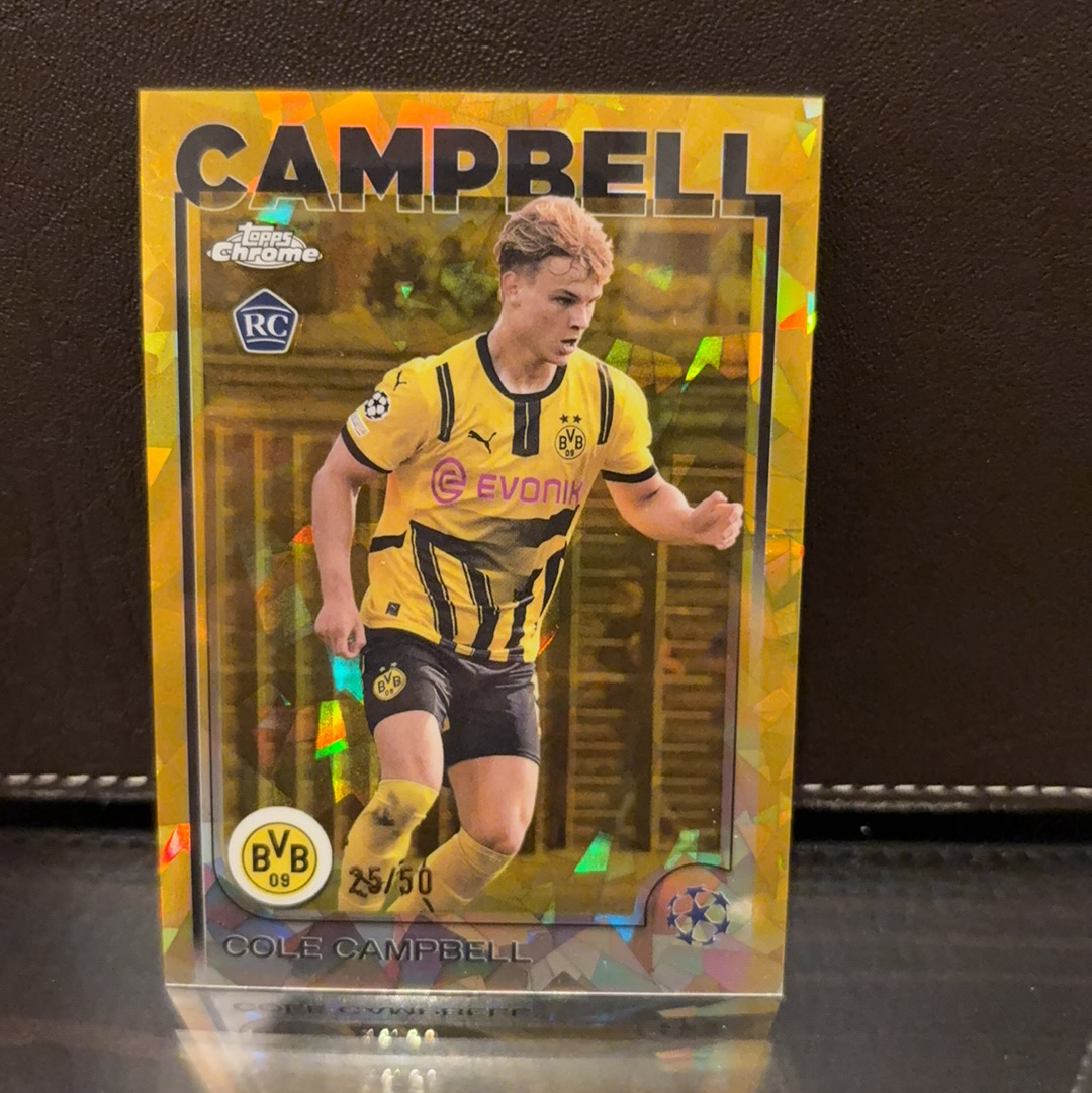 【风速狗】2024-25 Topps Chrome 欧冠 蓝宝石 Cole Campbell 科尔坎贝尔 RC 新秀 多特蒙德 美国 金碎冰折射 25/50编 金折 配色 未来可期 亲古
