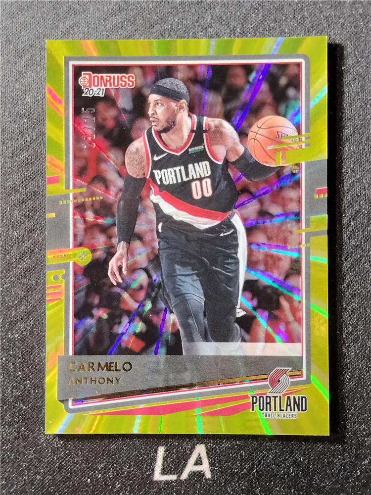 【LA拍卖】2020-21 Panini Donruss Carmelo Anthony 杜蕾斯 卡梅隆 安东尼 进攻万花筒 甜瓜 掘金队 尼克斯 湖人队 黄佛光折 黄射线折 base /25编 W15B