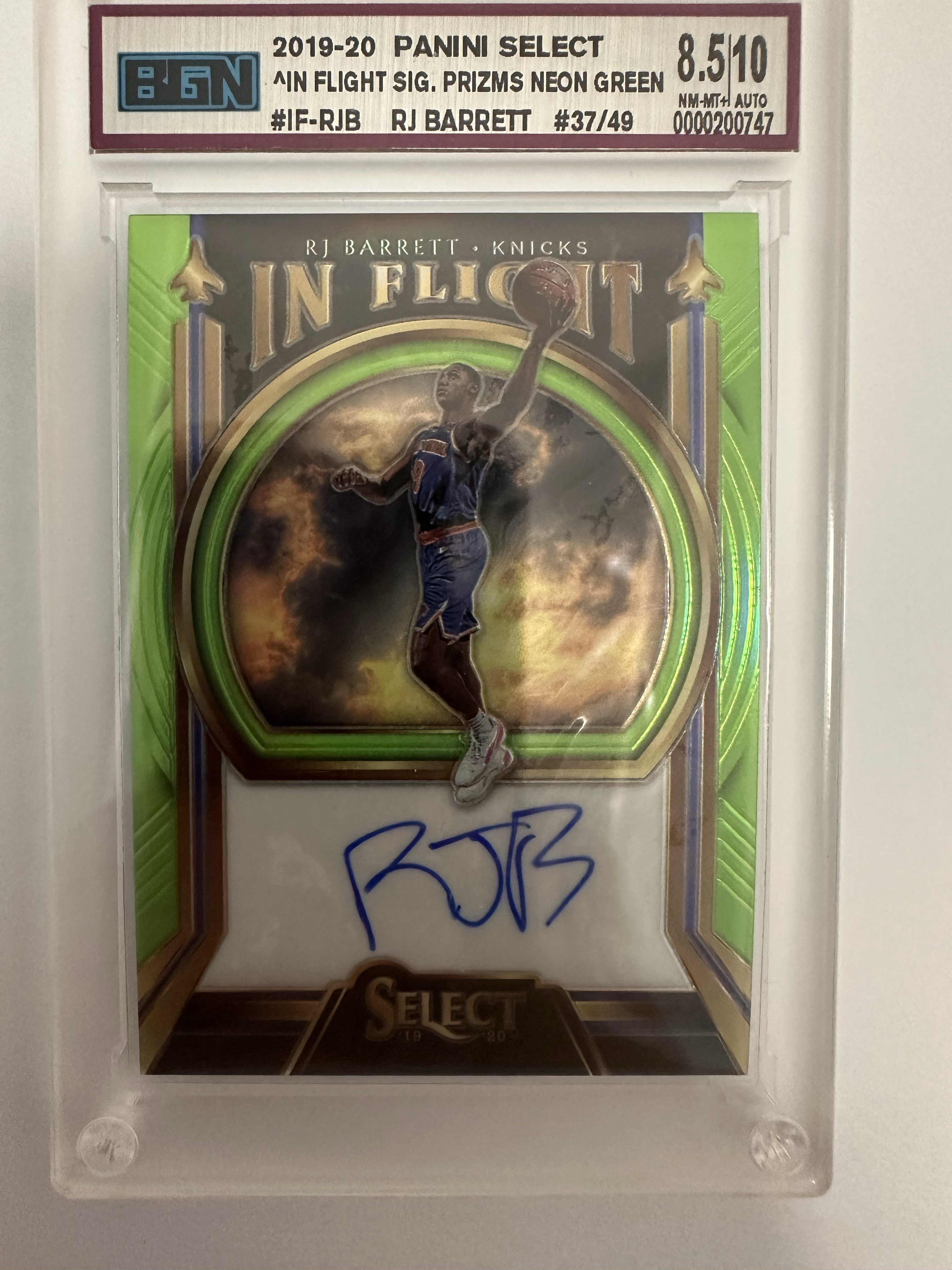 2019-20 Panini Select R.J. Barrett RC RC 新秀 尼克斯 RJ 巴雷特 37/49编 绿折 扎染 BGS评级卡8.5分 金标 签名10分 升空签 飞升签 卡签