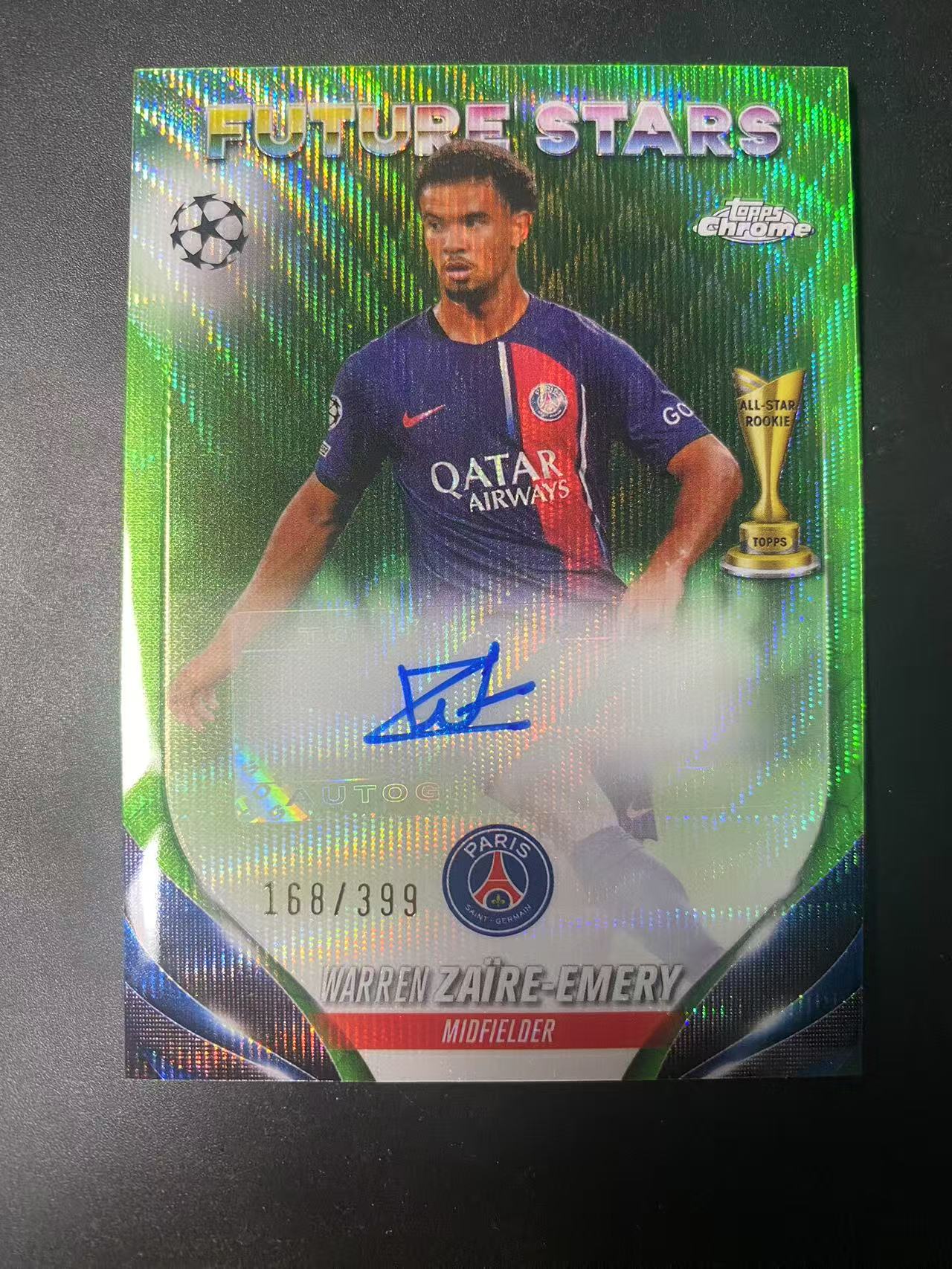 2024 Topps Chrome Warren Zaïre-Emery 欧冠TC ZAIRE EMERY 大巴黎 埃梅里 签字 绿波纹折 399编 未来之星 巴黎圣日耳曼 法国 姆巴佩队 卡品如图
