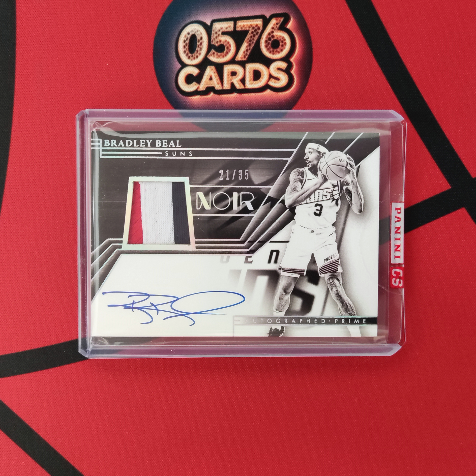 2023-24 Panini Noir Bradley Beal 比尔 加盟快船 比老大 太阳 35编 黑白版 亲穿 三色 Patch 球衣 签字卡 卡签 交换回 原封夹 微白 21/35【零五七六】