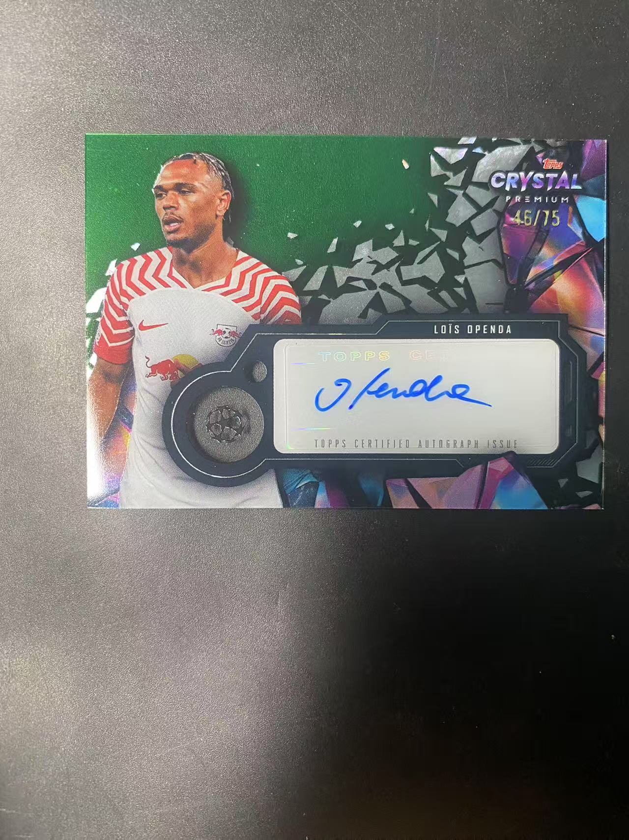 2023-24 Topps crystal Lois Openda 欧冠 水晶系列 莱比锡红牛 绿平行 签字 75编 罗伊斯 奥蓬达 奥彭达 卡品如图