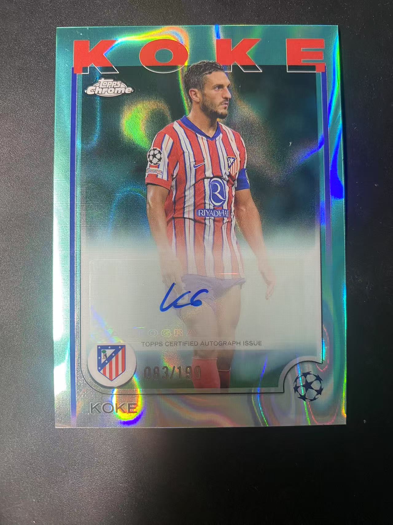 2025 Topps Chrome Koke 欧冠马竞 马德里竞技 科克 KOKE 199编 签字 青熔岩折 卡品如图