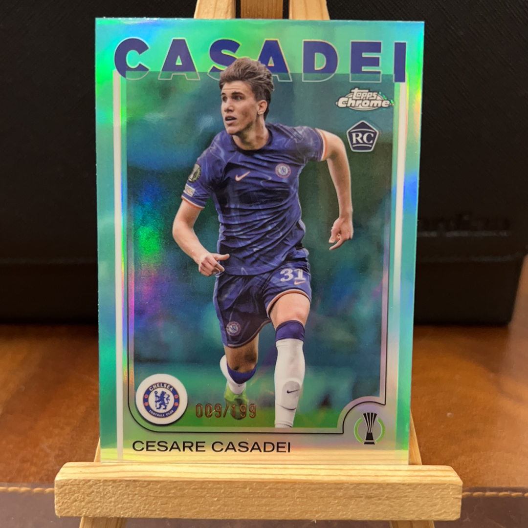 2024-25 Topps Chrome Cesare Casadei 【耳朵卡社】Topps 24-25 欧战chrome 新秀 RC 折射卡 9/199编 切雷萨-卡萨代伊 切尔西 sollent