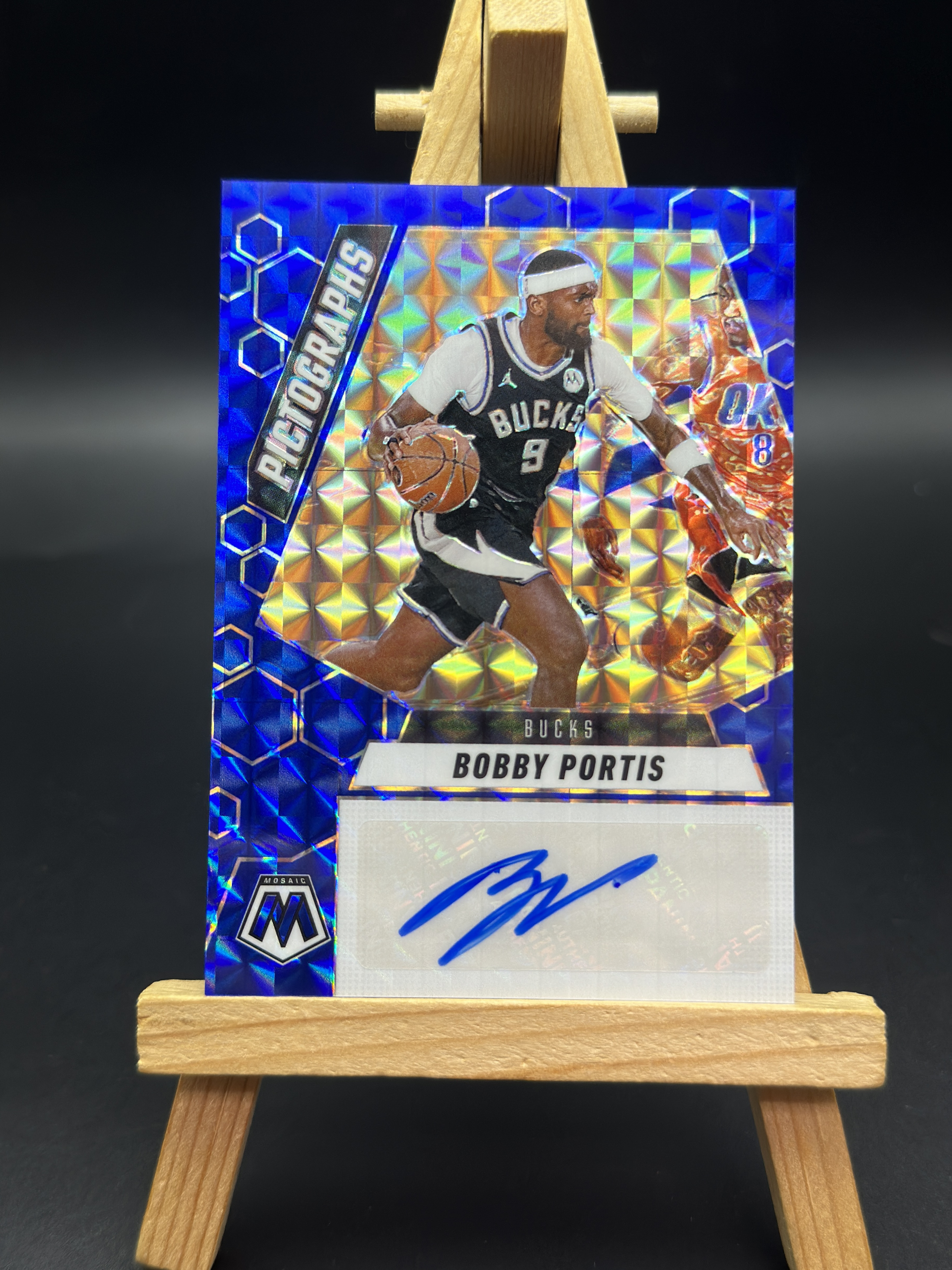 2024-25 Panini Mosaic Bobby Portis 马赛克 雄鹿 鲍比 波蒂斯 贴签 签字 /35编 蓝马赛克折 收藏必备 微瑕如图 Joho