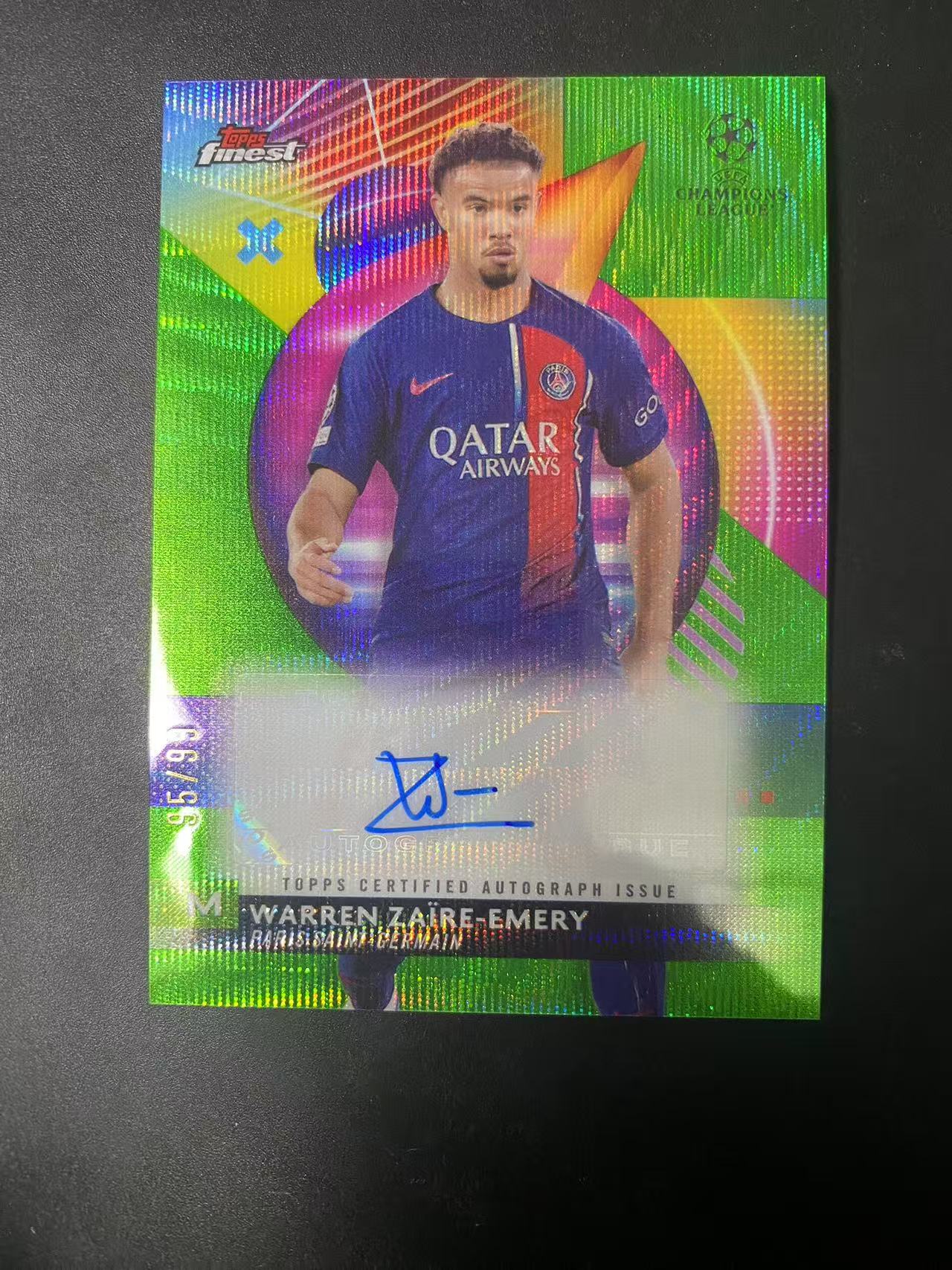2024 Topps Finest Warren Zaïre-Emery 埃梅里 签字 贴签 绿折 欧冠 99编 大巴黎 卡品如图