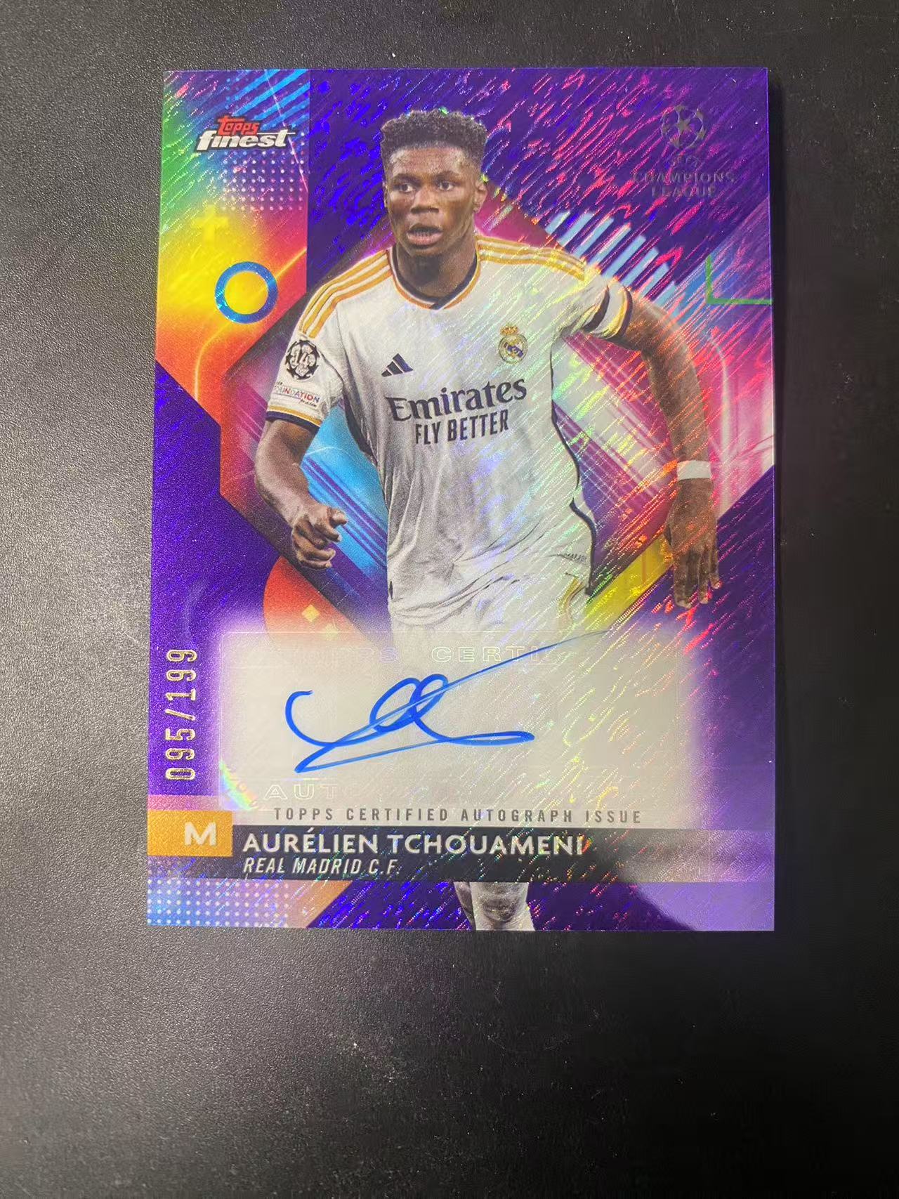 2024 Topps Finest Aurélien Tchouameni 欧冠 皇马妖人 楚阿梅尼 完美签字 限量095/199编 紫瀑布折 经典选图 法国 卡品如图