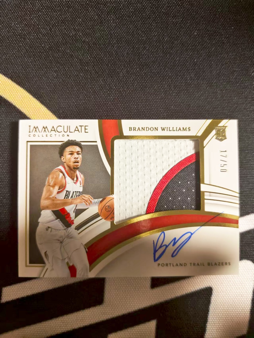 21-22 Panini Immaculate Brandon Williams 开拓者 布兰登 威廉姆斯 新秀 RC /50编 金折 RPA签字 卡签 patch球衣物料 洛北拍卖 泡沫66
