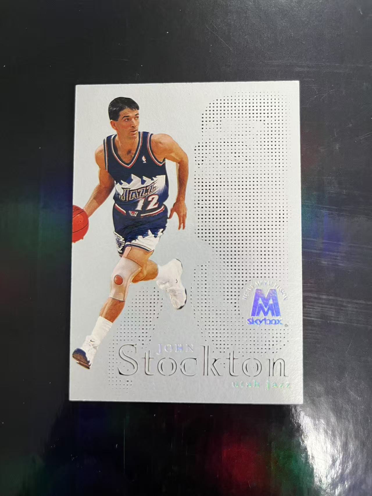 1998-99 Fleer Molten Metal John Stockton Fusion 爵士 约翰 斯托克顿白金肖像 特卡 超大比例箱货 sssp 镂空头像刻字设计 超漂亮 少见 老特卡