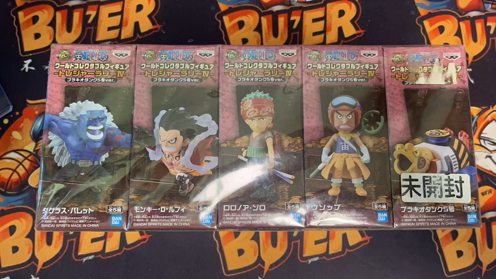 2020 Bandai One Piece 路飞 日版 WCF 海贼王 路飞 索隆 乌索普 蜿龙号 巴雷特 五体一套 全新未拆封 金猫贴 收藏佳品