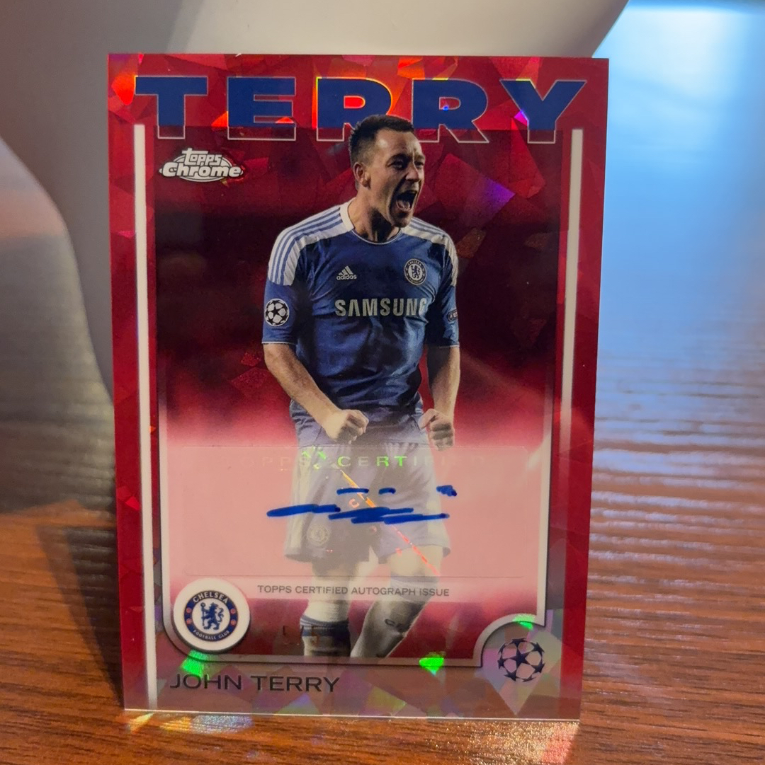 【风速狗】2025 topps Chrome Sapphire 蓝宝石John Terry 特里 签名 完美签 切尔西 欧冠 签字 5/5编 红折 红碎冰 尾编 超低编 铁血队长 板擦
