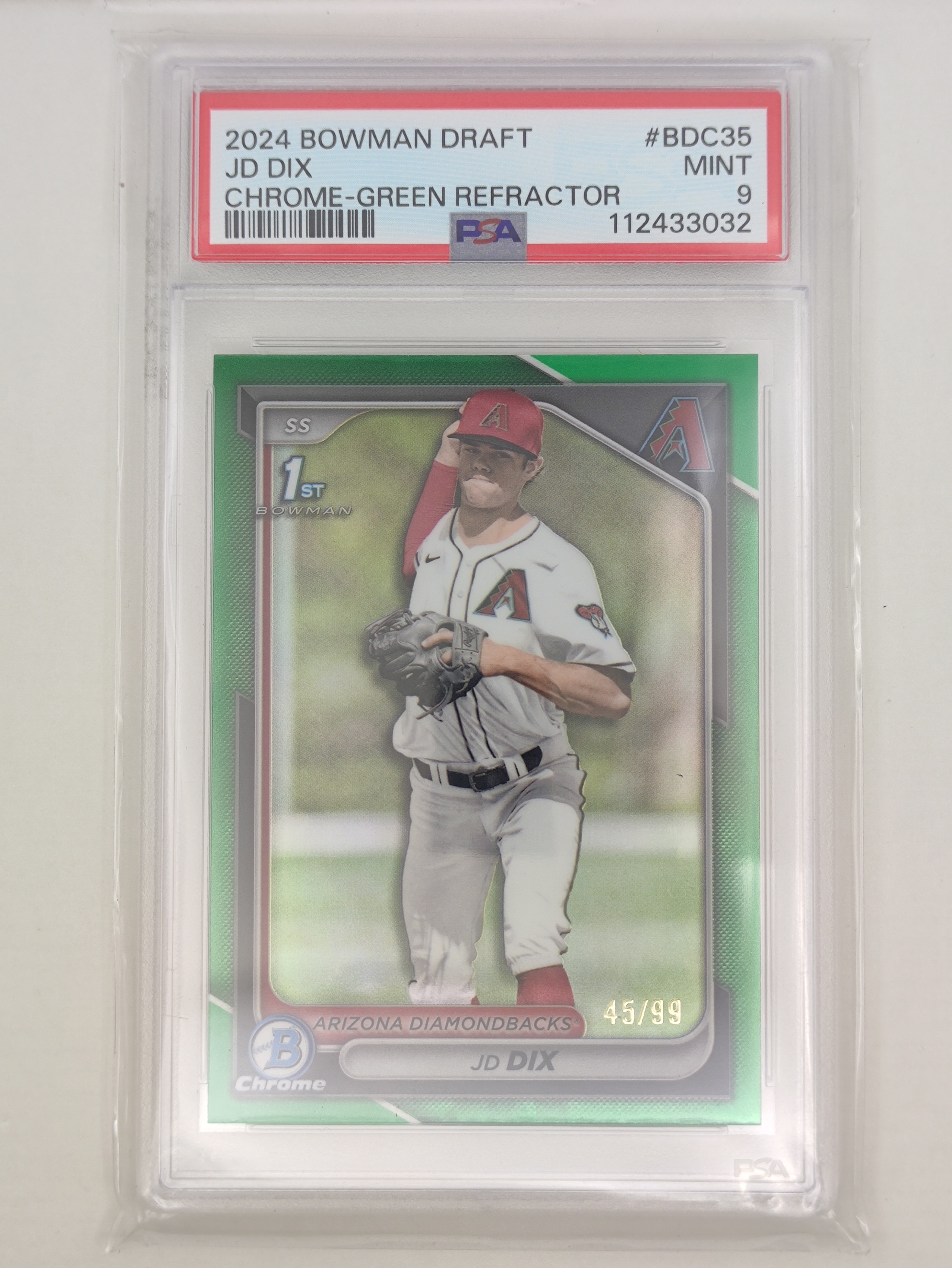 Topps 2024 bowman draft chrome 1st JD Dix 45/99编 PSA 9 绿折 Green refractor 响尾蛇 投手 卡品如图 介意勿拍 brc