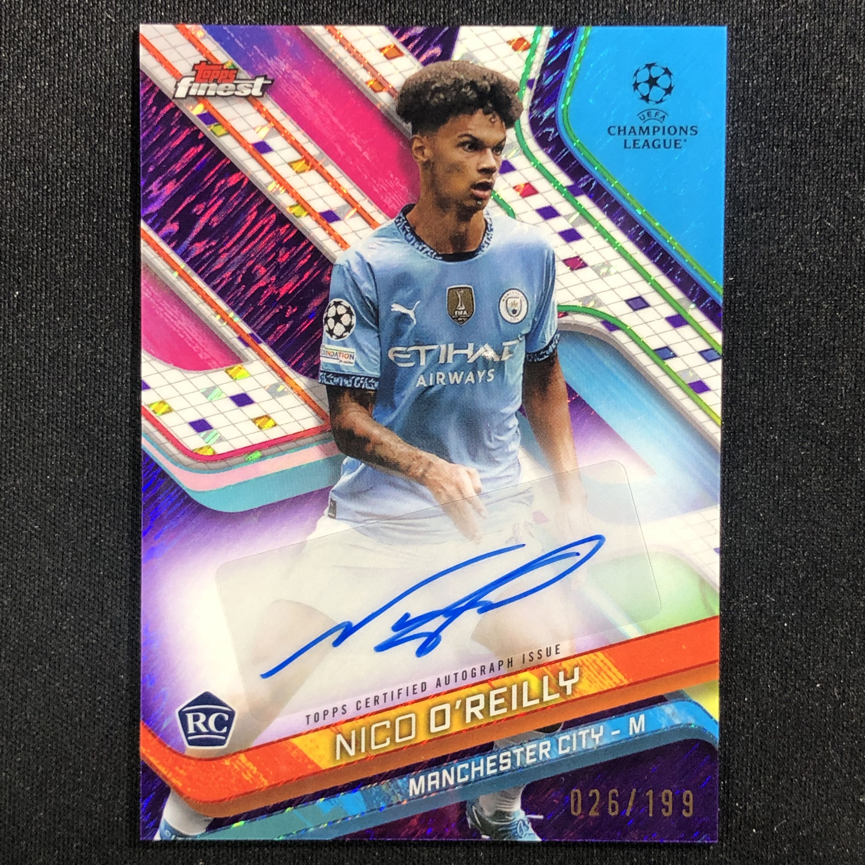 2025 Topps Finest Nico O'reilly RC 【piaji】奥莱利 曼城 新秀 /199编 紫shimmer 签字 蓝月亮 潜力新星 哈兰德队友 英格兰 尖尖