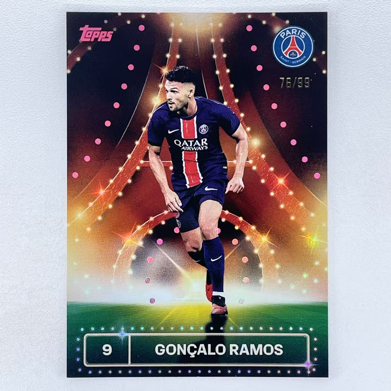 B+ 2025 Topps Paris Saint-Germain Team Set Goncalo Ramos 贡萨洛 拉莫斯 葡萄牙 巴黎圣日耳曼 大巴黎队盒 99编 粉折 折射 巴黎人表演特卡 轻印如图 BM001