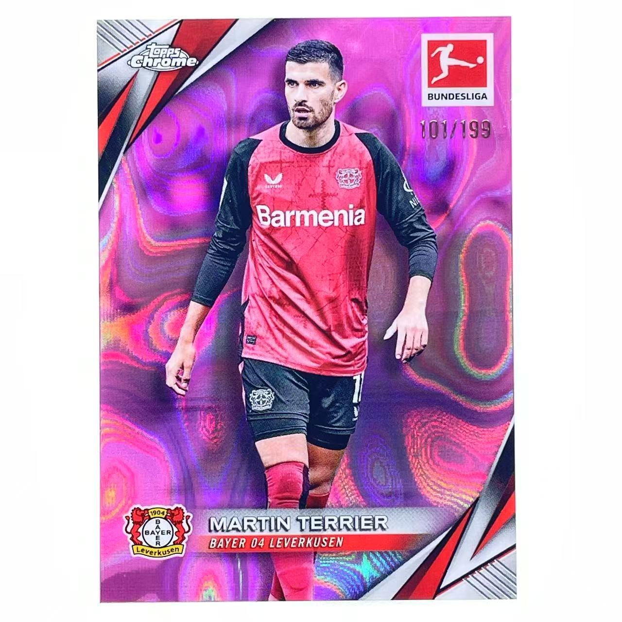 B+ 2024-25 Topps Bundesliga Chrome Martin Terrier 马坦 泰里耶 勒沃库森 199编 粉熔岩折 折射 德甲 TC 轻印如图 BM001