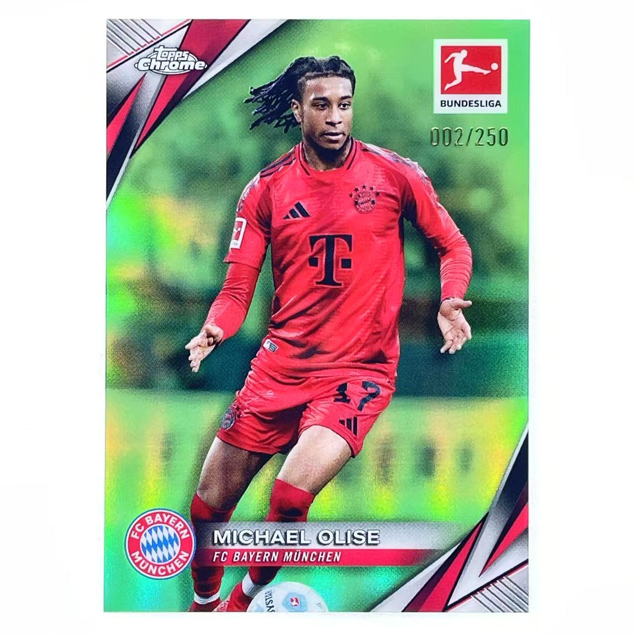 B+ 2024-25 Topps Bundesliga Chrome Michael Olise 迈克尔 奥利斯 奥利塞 水晶宫 拜仁慕尼黑 法国 250编 霓虹绿折 折射 德甲 TC 轻印如图 BM001