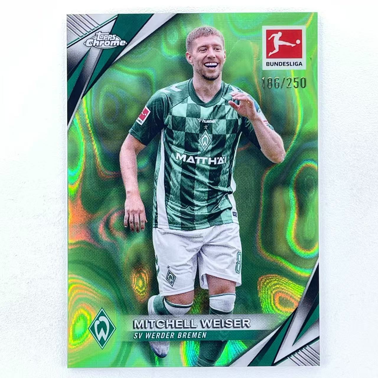 B+ 2024-25 Topps Bundesliga Chrome Mitchell Weiser 米切尔 维泽尔 云达不莱梅 250编 霓虹绿熔岩折 折射 德甲 TC 轻印如图 BM001