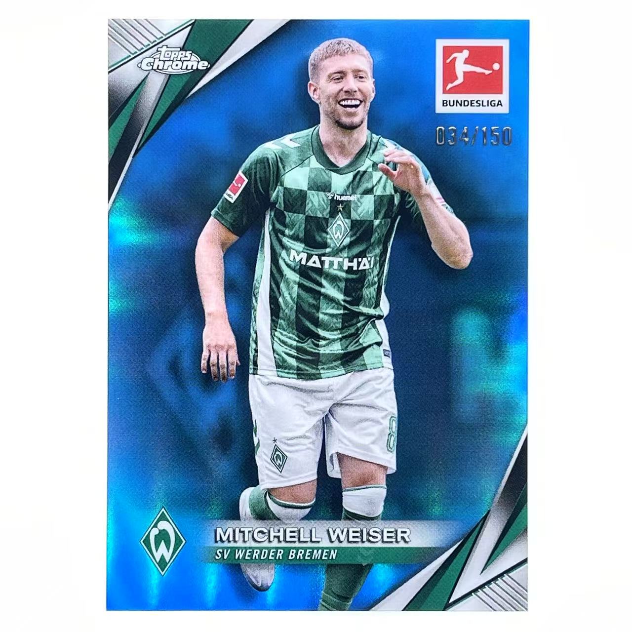 B+ 2024-25 Topps Bundesliga Chrome Mitchell Weiser 米切尔 维泽尔 云达不莱梅 150编 蓝折 折射 德甲 TC 轻印如图 BM001