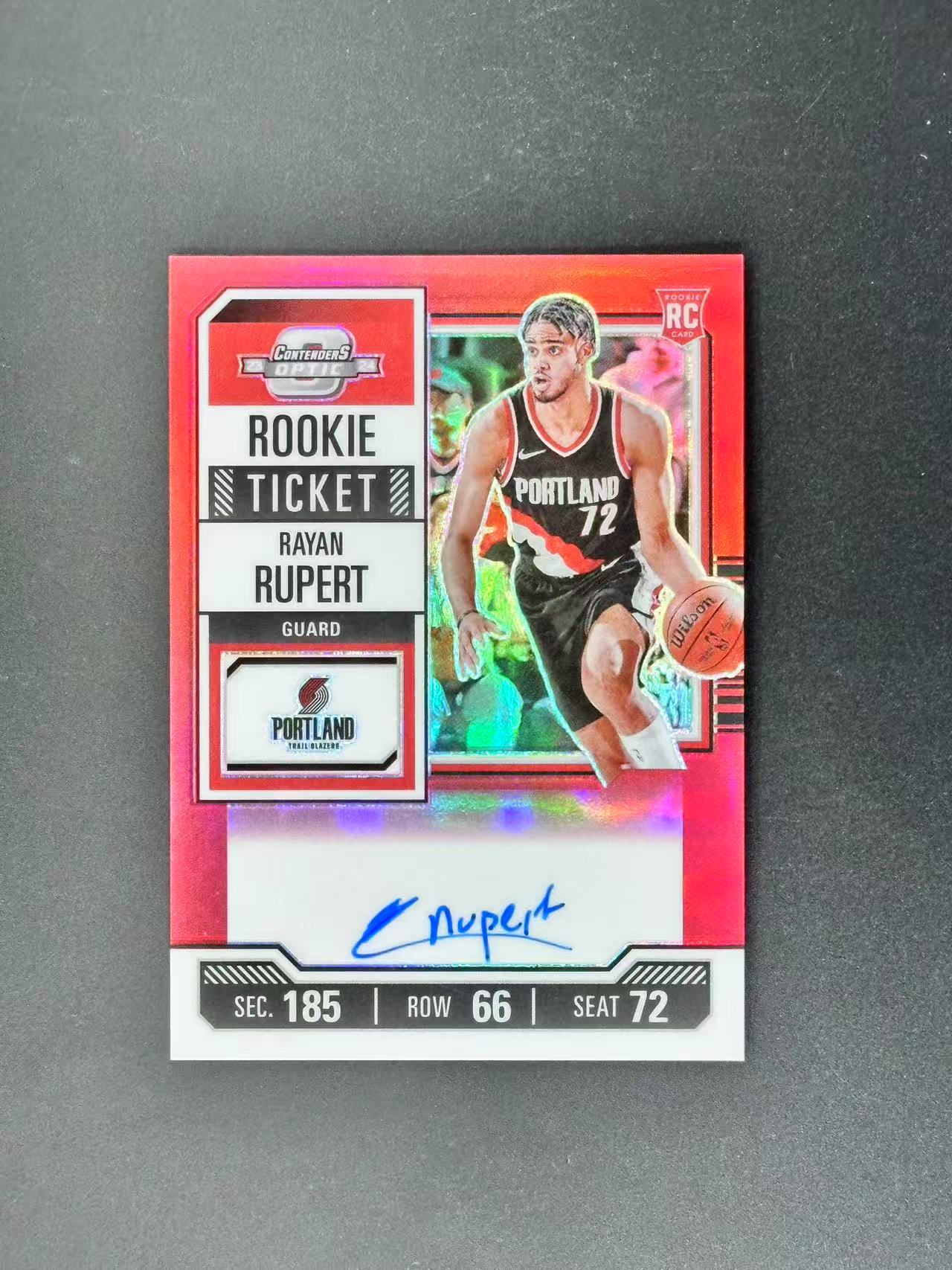 2023-24 Panini Contenders Optic Rayan Rupert RC 【林哦哦代卖】拉扬 吕佩尔 新秀 球票OP 签字 99编 红折 折射 开拓者 瑕疵如图(咖啡)